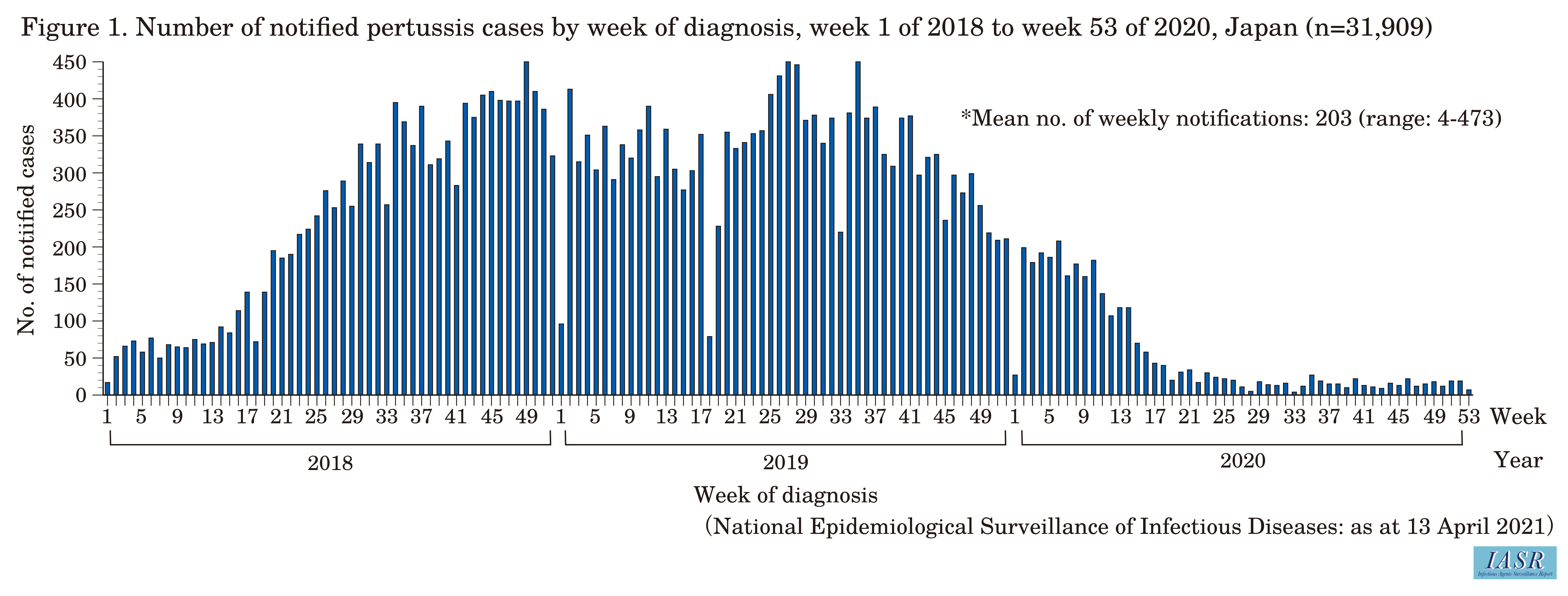 Pertussis in Japan, as at January 2021