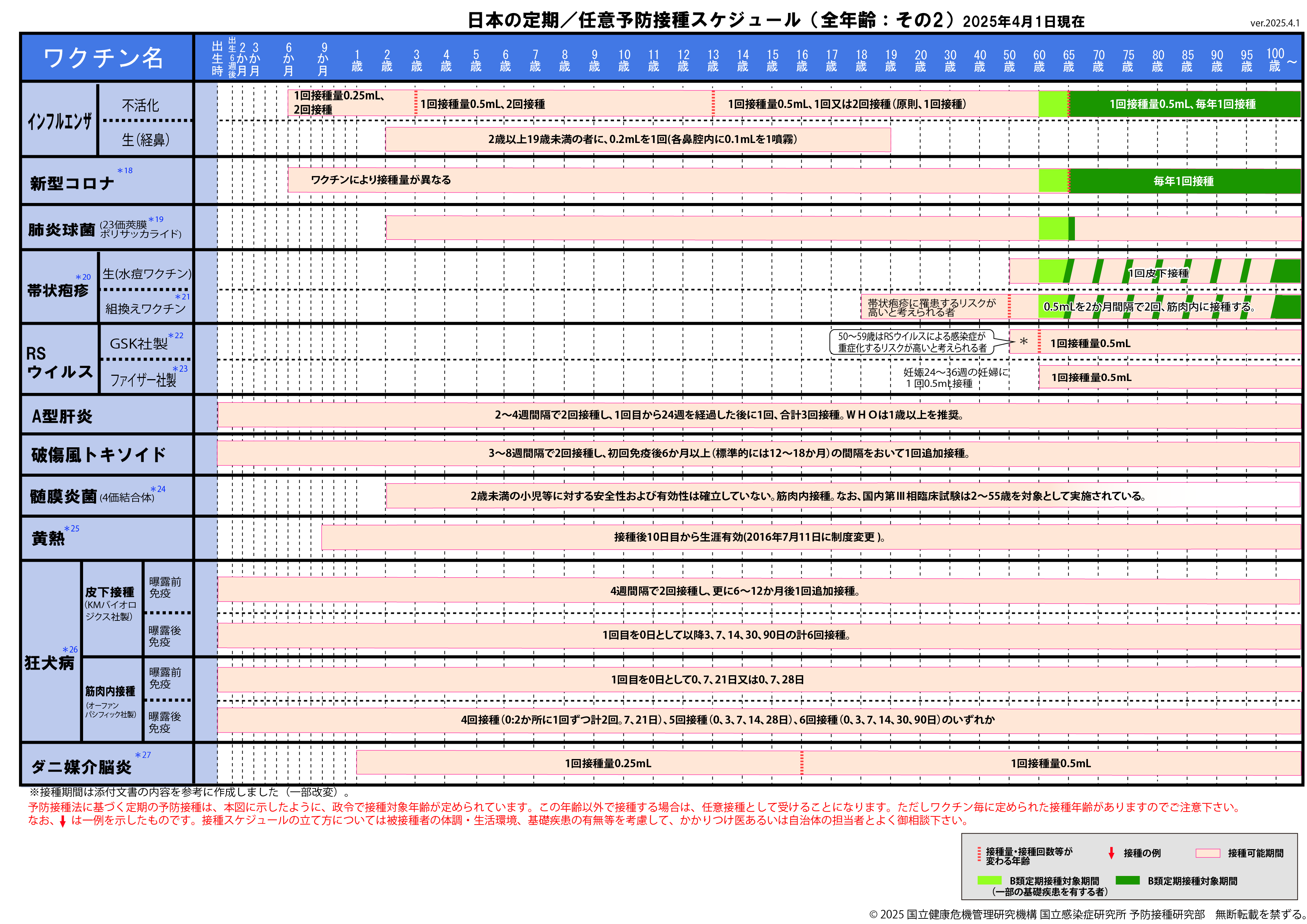 定期/任意予防接種スケジュール [2025年4月1日~2025年6月29日] 全年齢