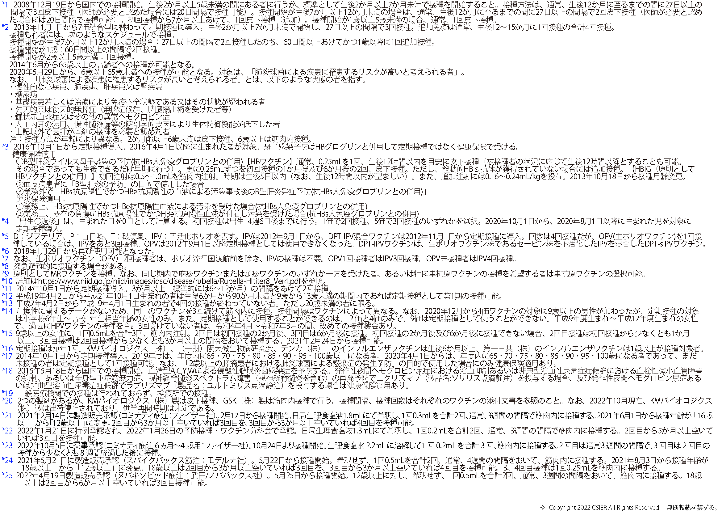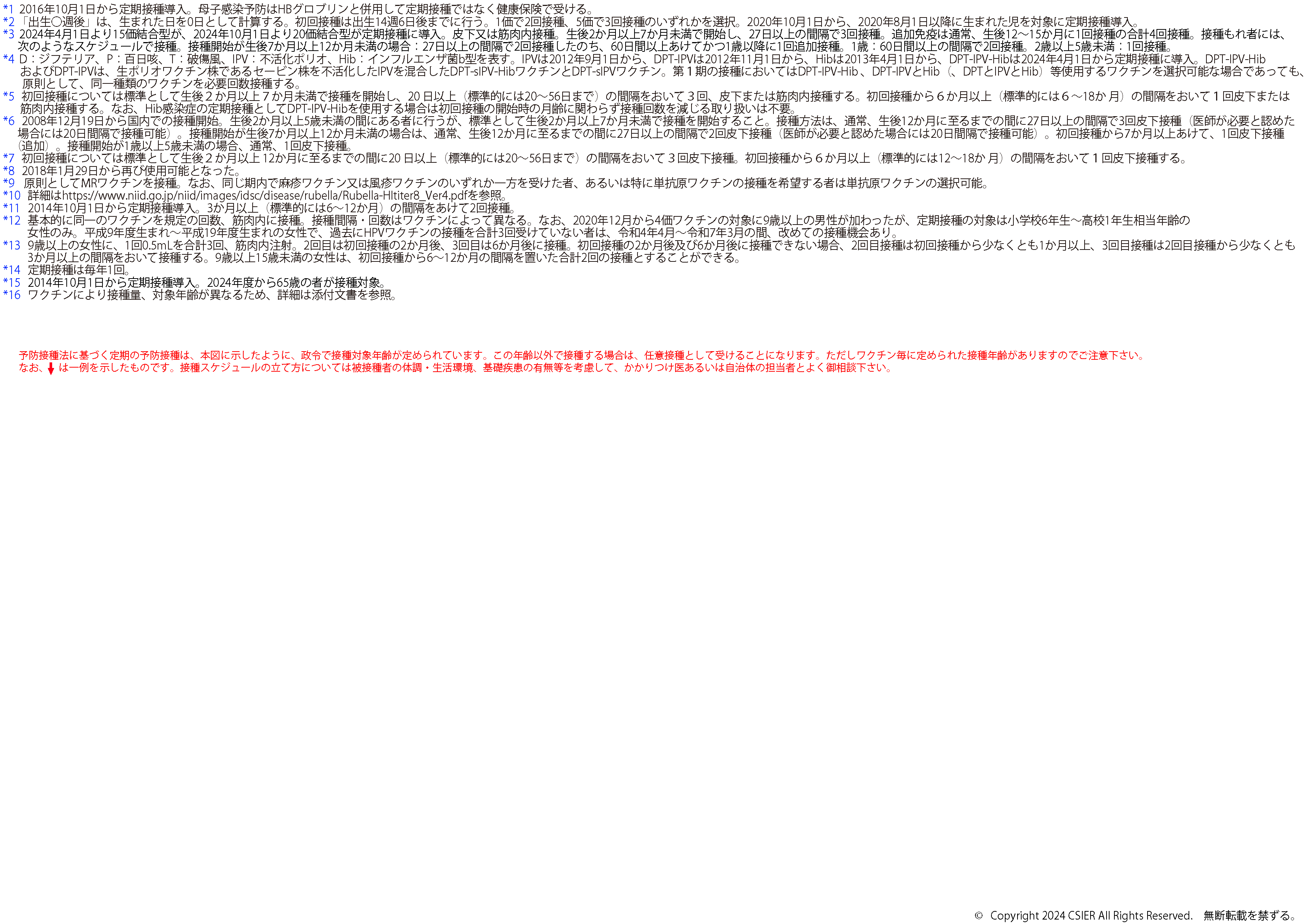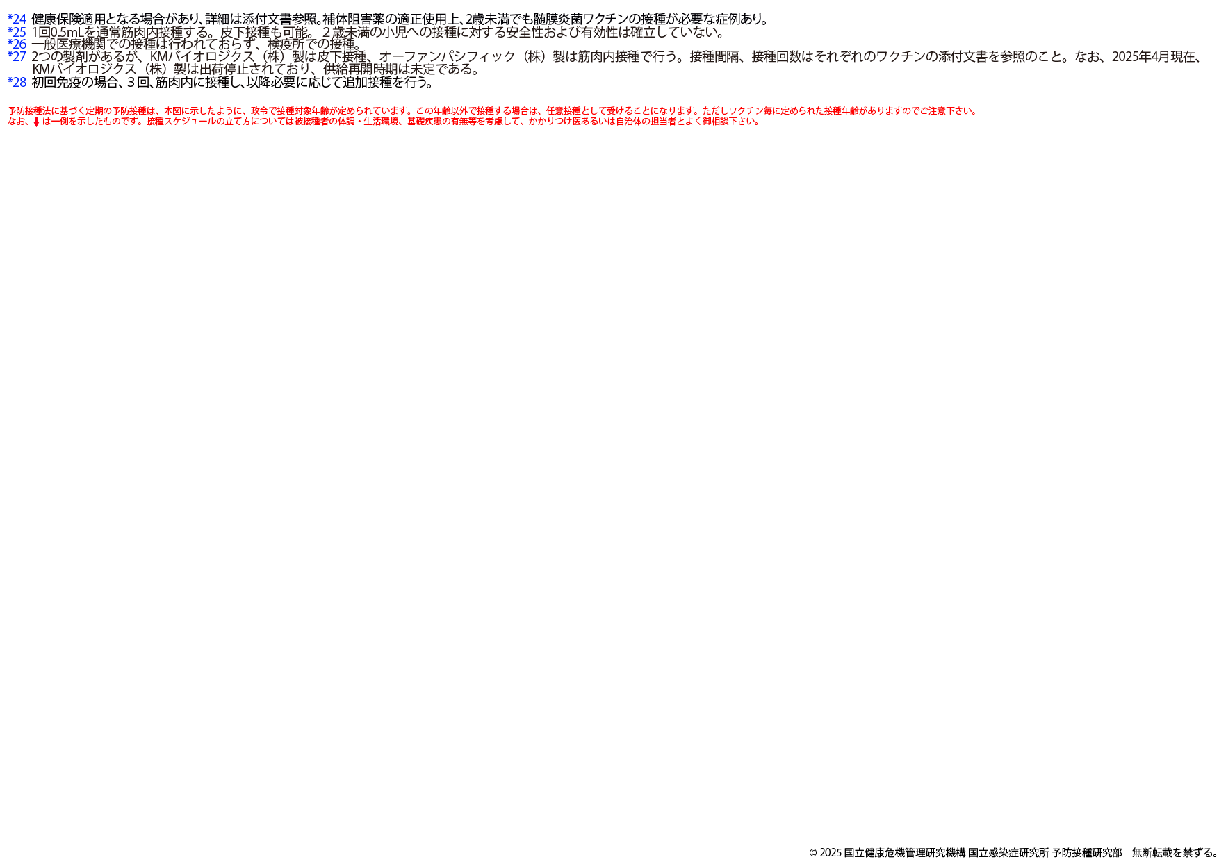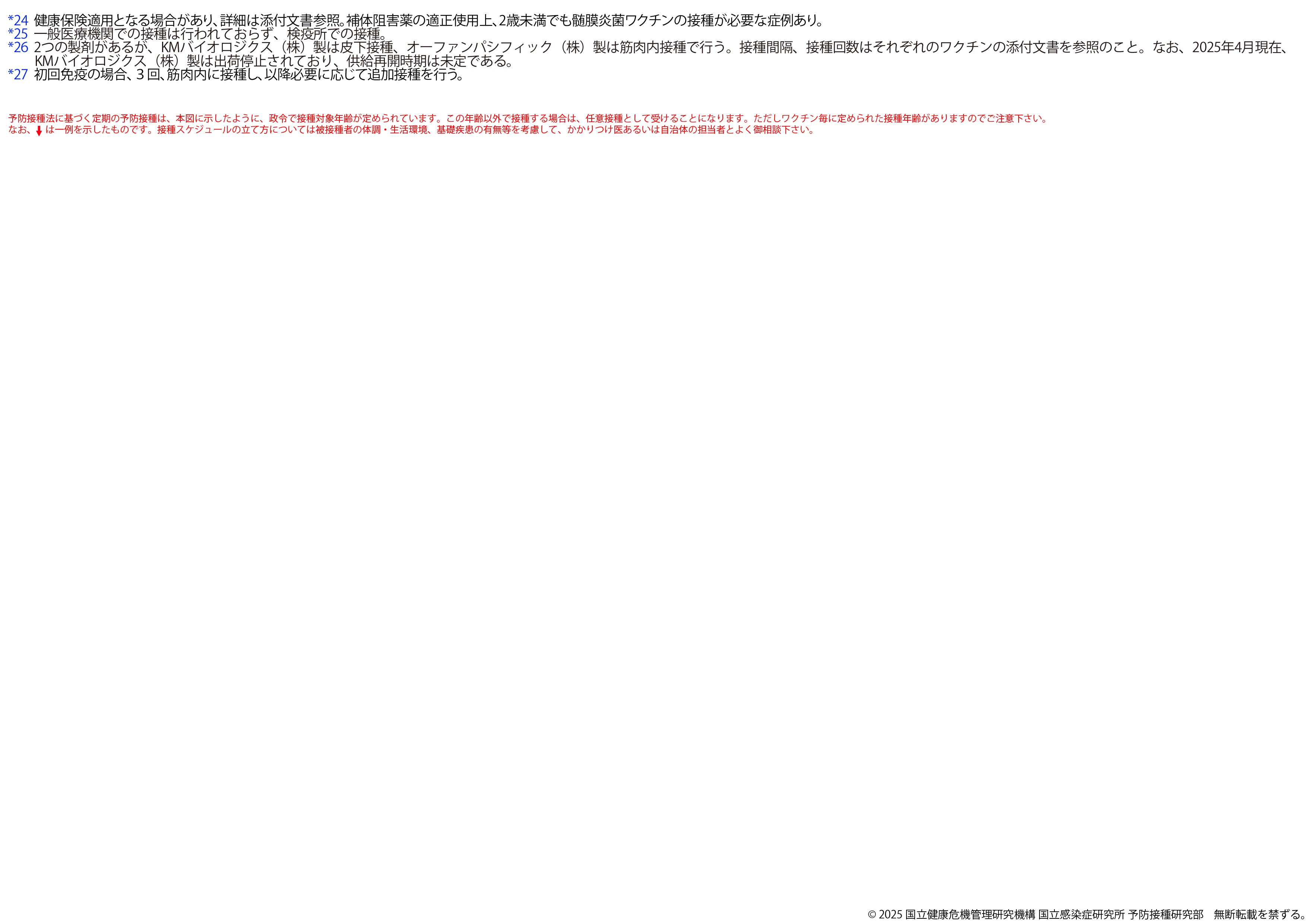 ※2025年8月25日版 変更点:ヒトパピローマウイルスワクチンの注釈(*12)へ9価ワクチンの対象に9歳以上の男性への接種が加わったことに伴う変更を追記しました。