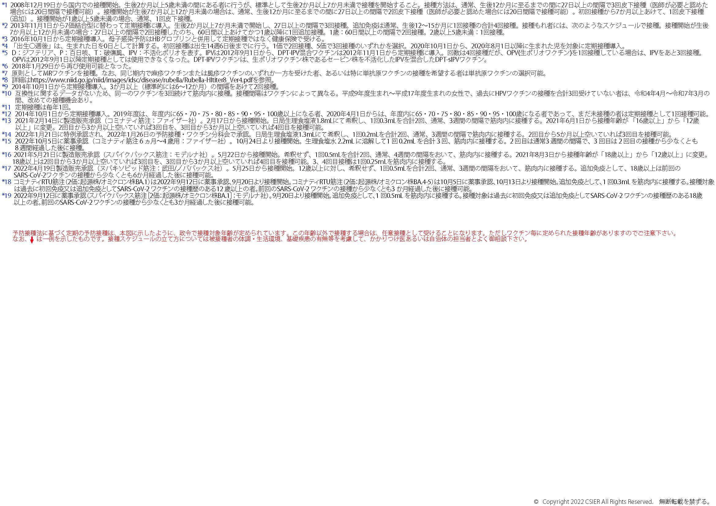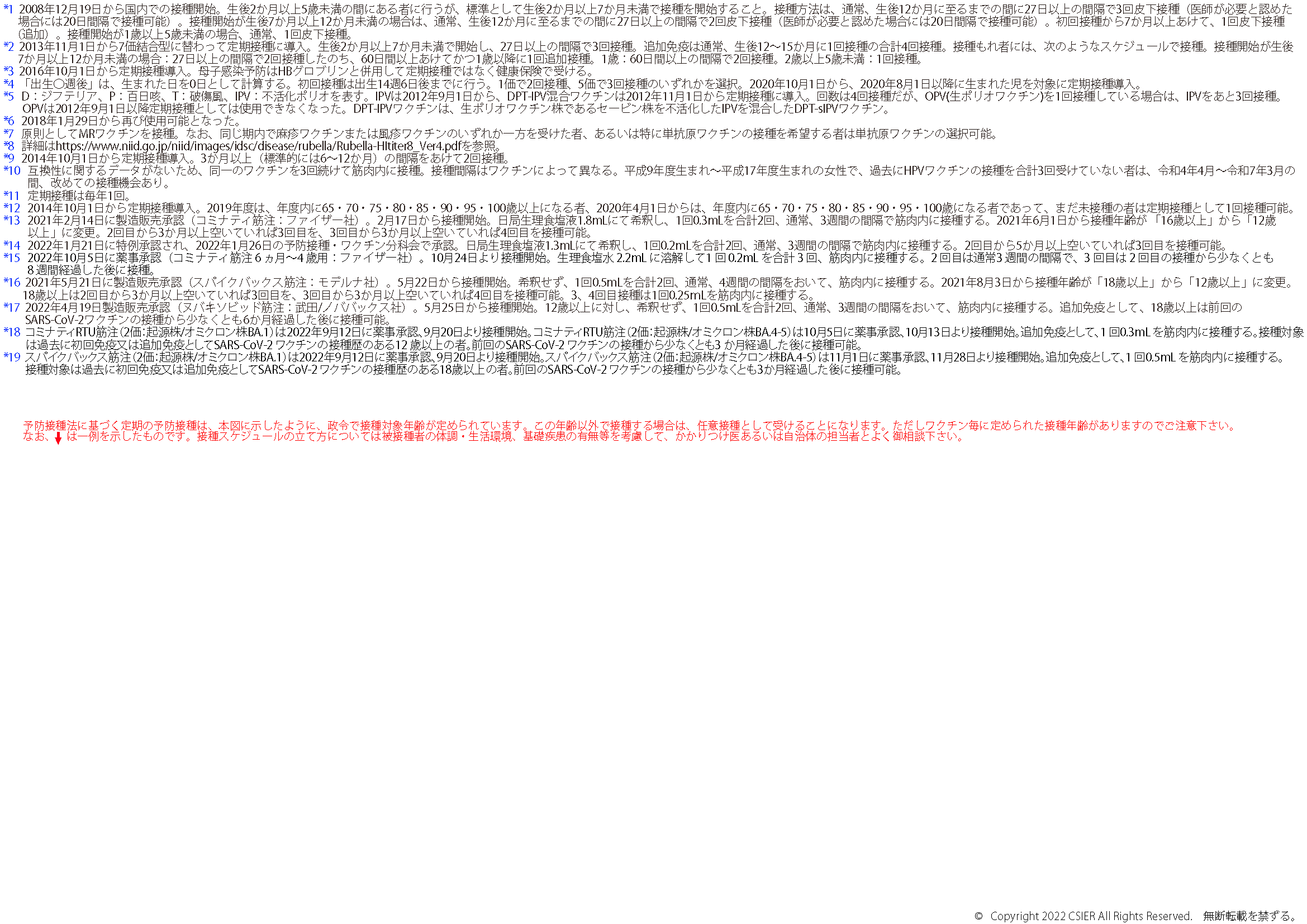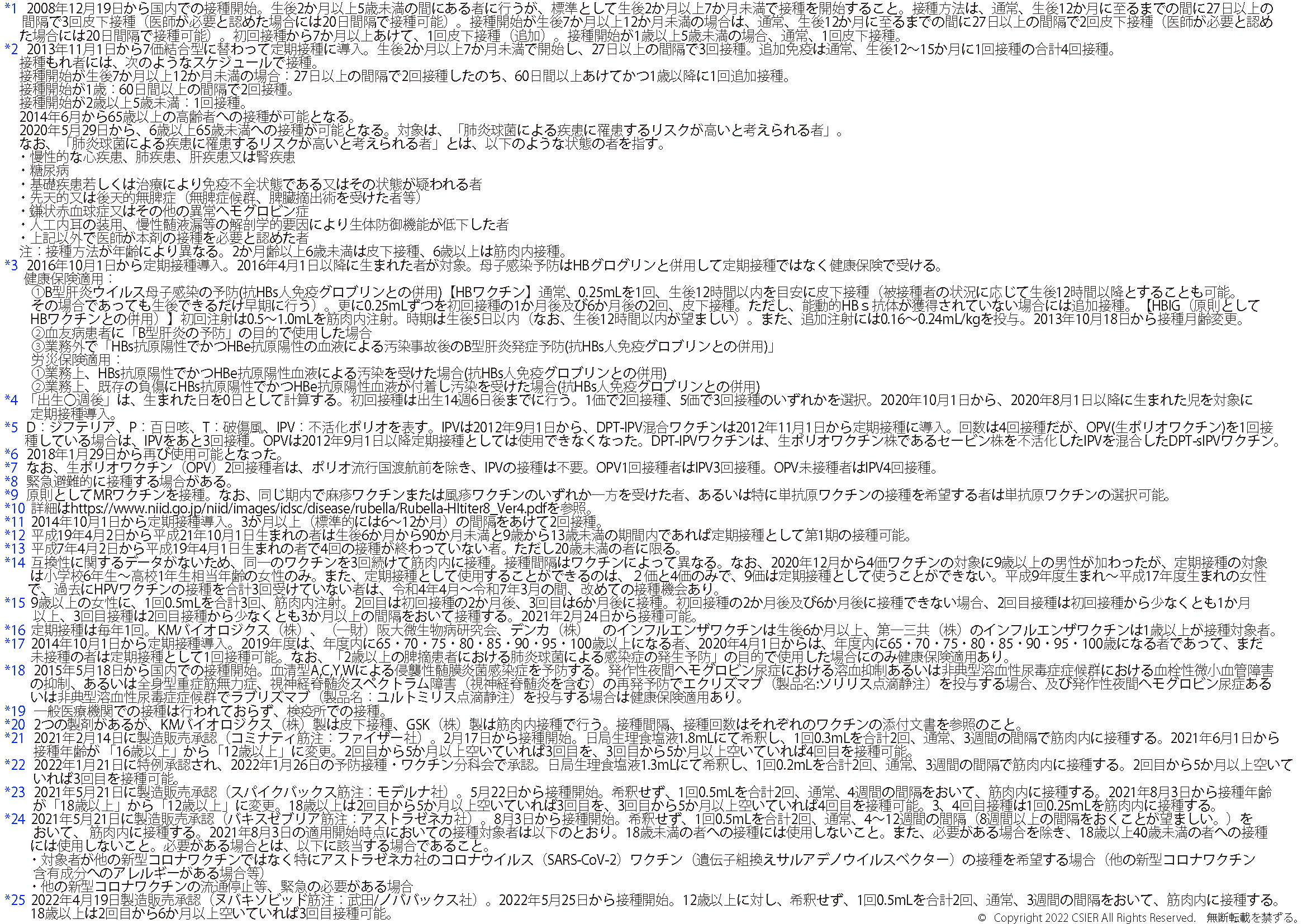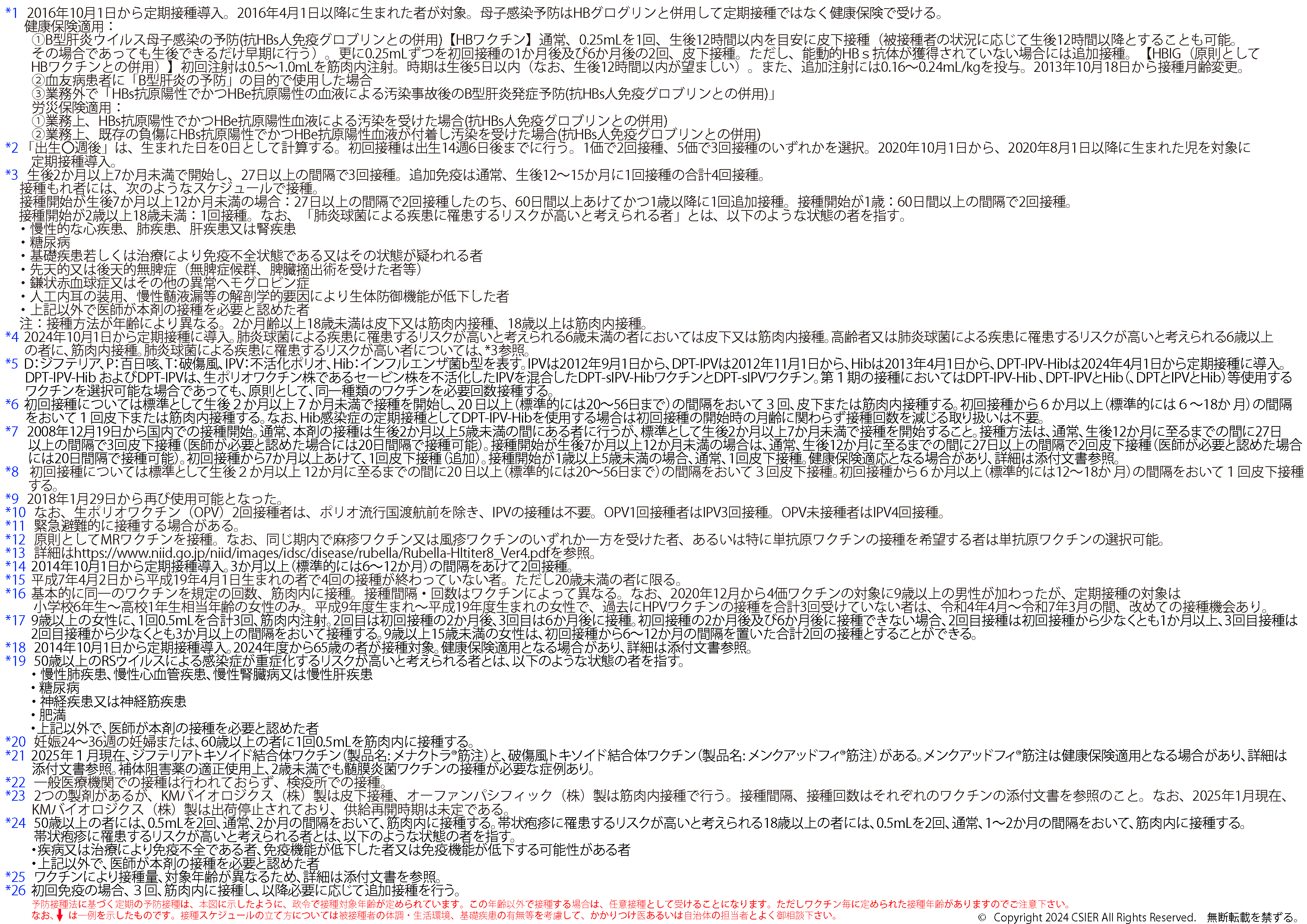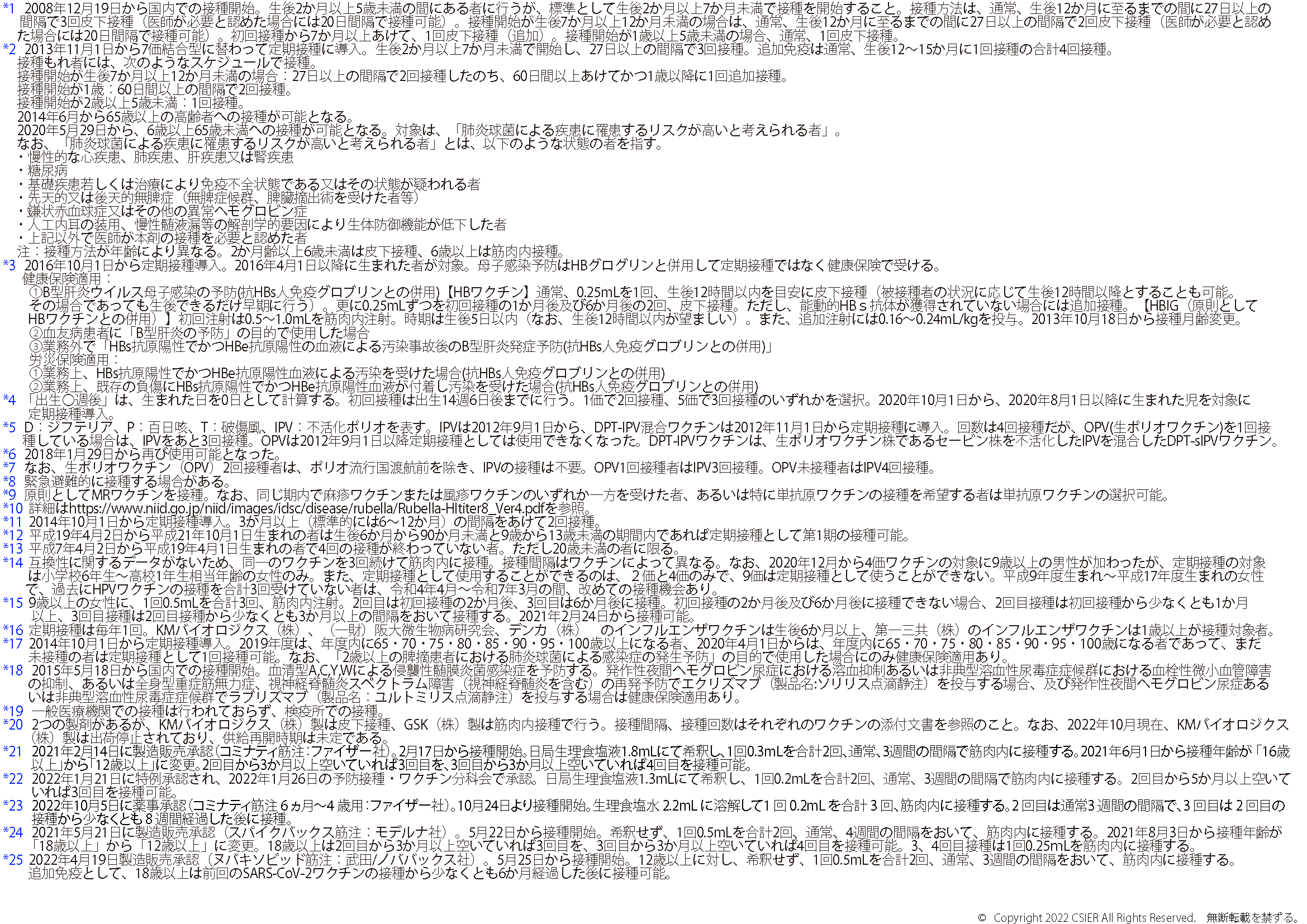 ※2025年8月25日版 変更点:ヒトパピローマウイルスワクチンの注釈(*12)へ9価ワクチンの対象に9歳以上の男性への接種が加わったことに伴う変更を追記しました。