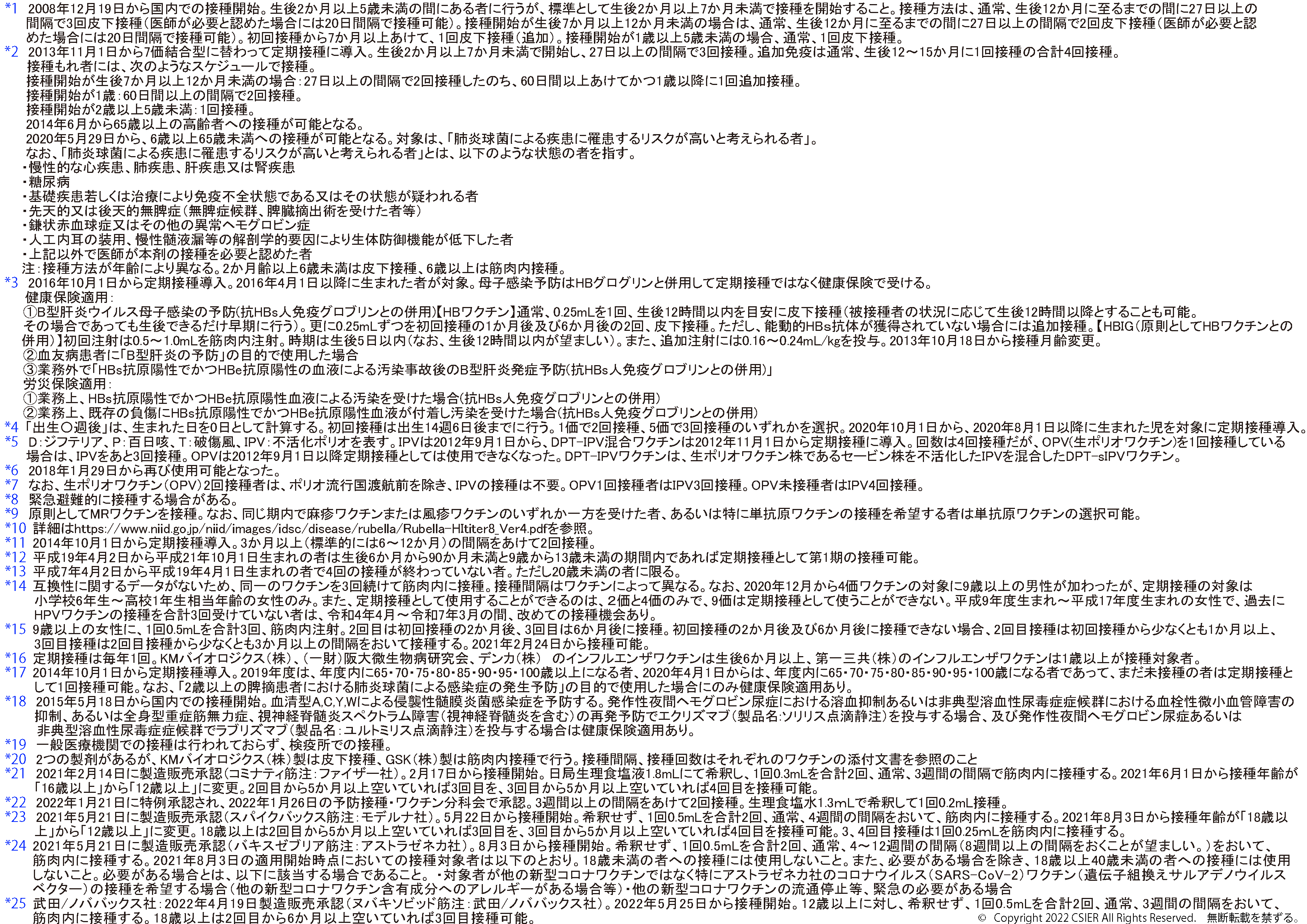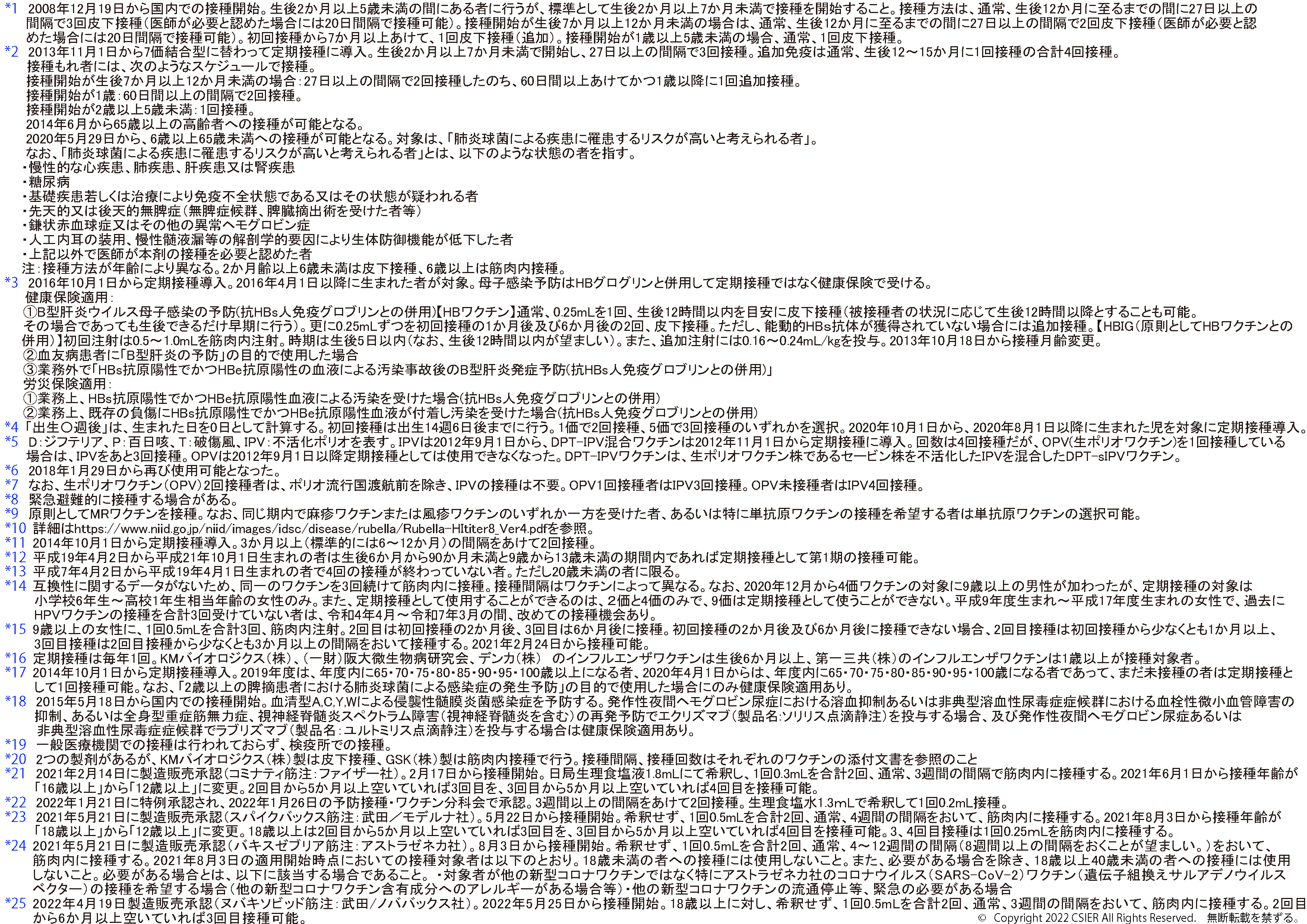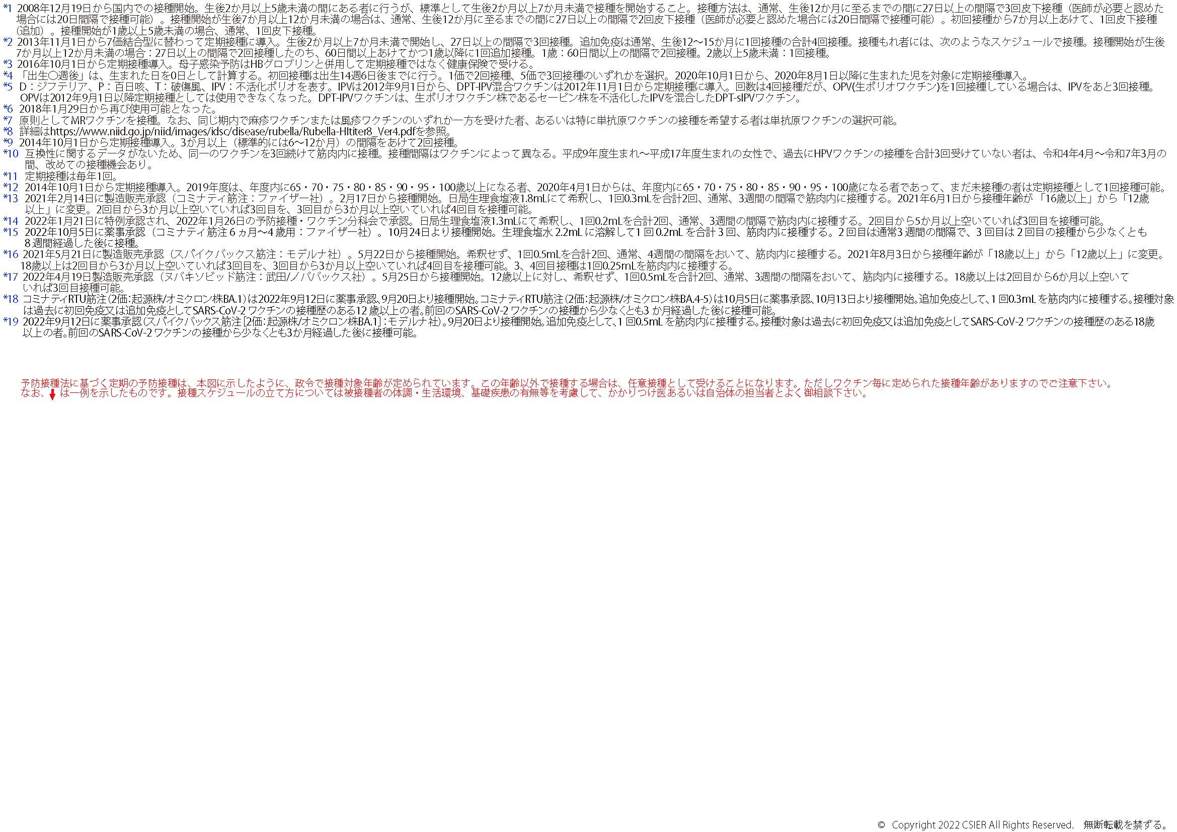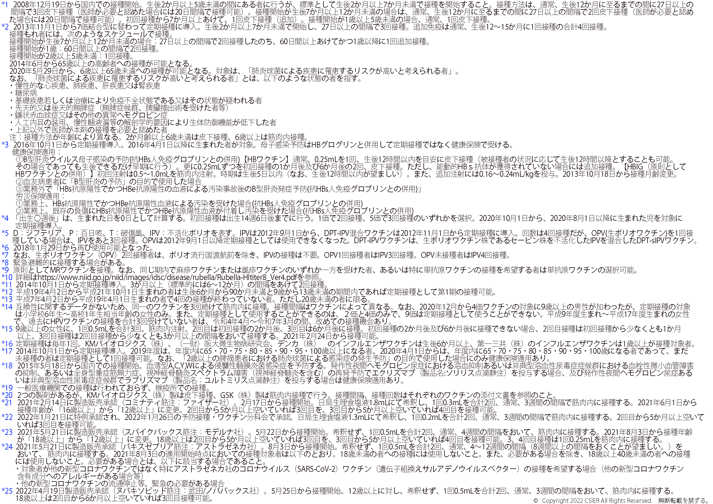 ※2025年8月25日版 変更点:ヒトパピローマウイルスワクチンの注釈(*12)へ9価ワクチンの対象に9歳以上の男性への接種が加わったことに伴う変更を追記しました。