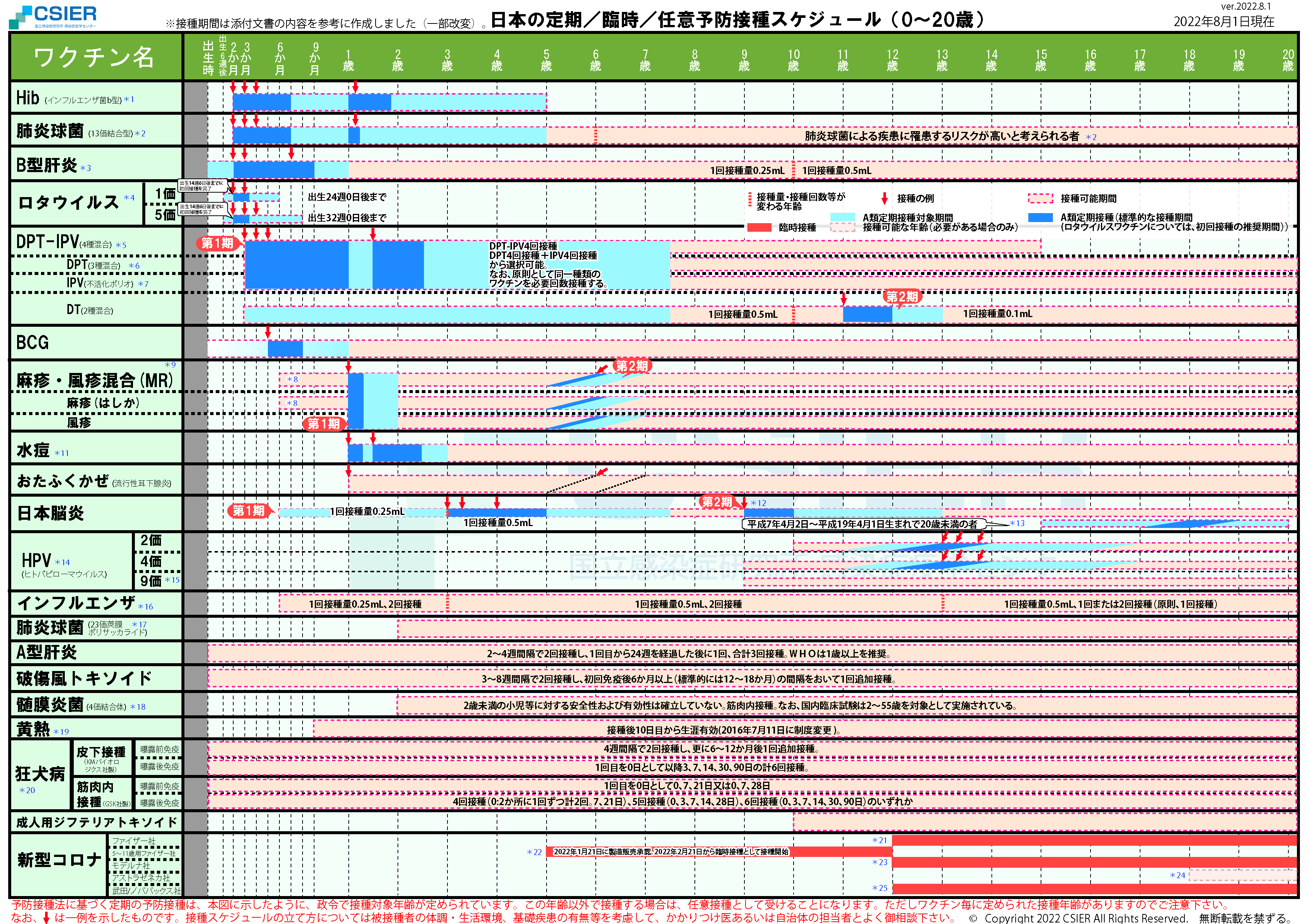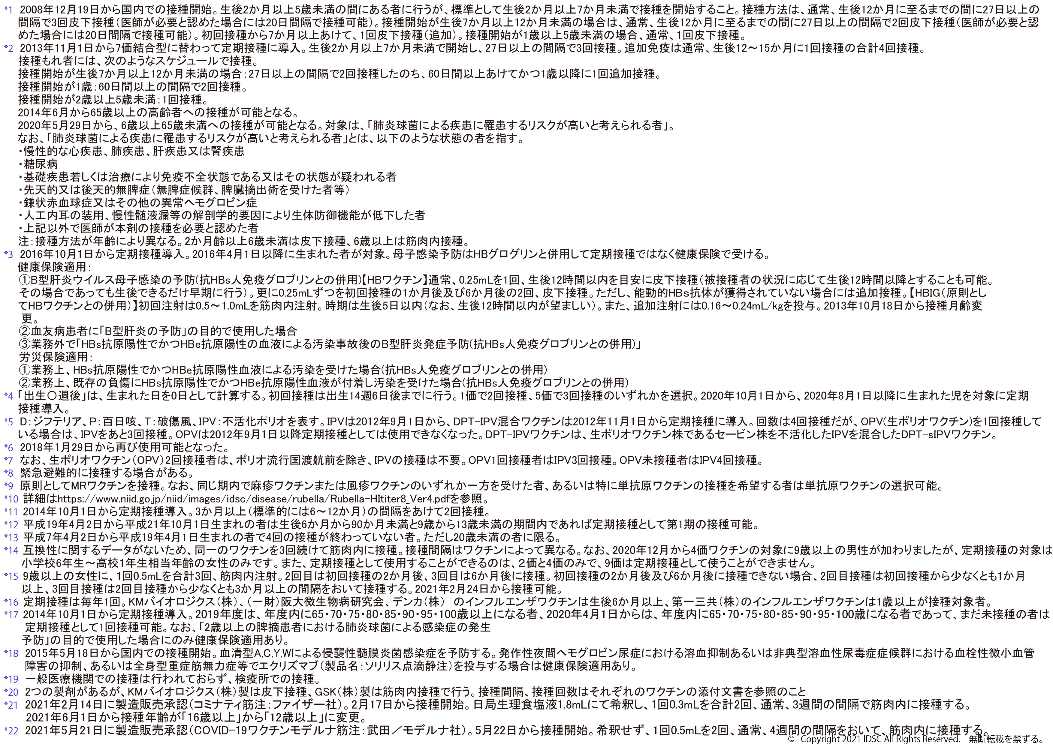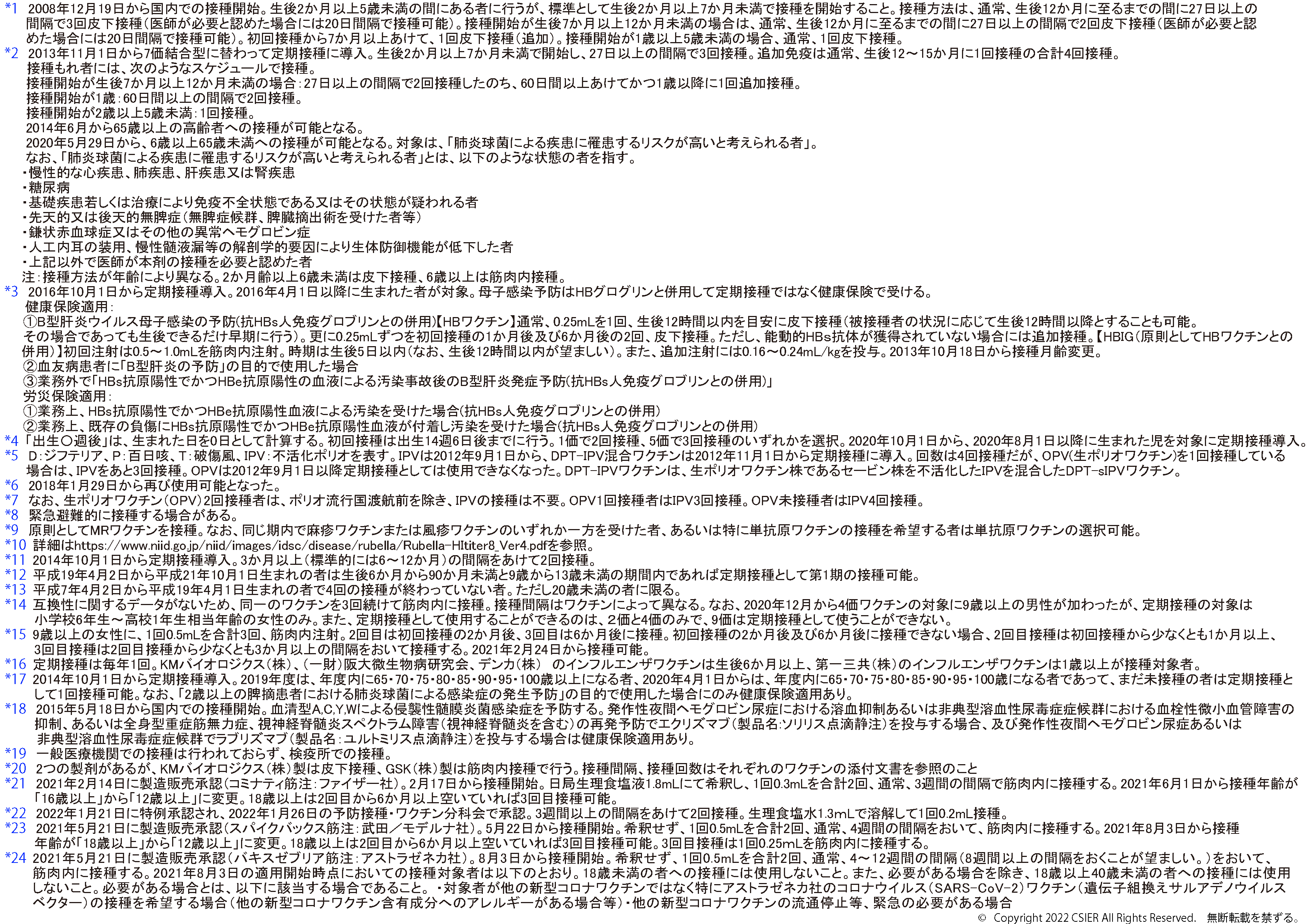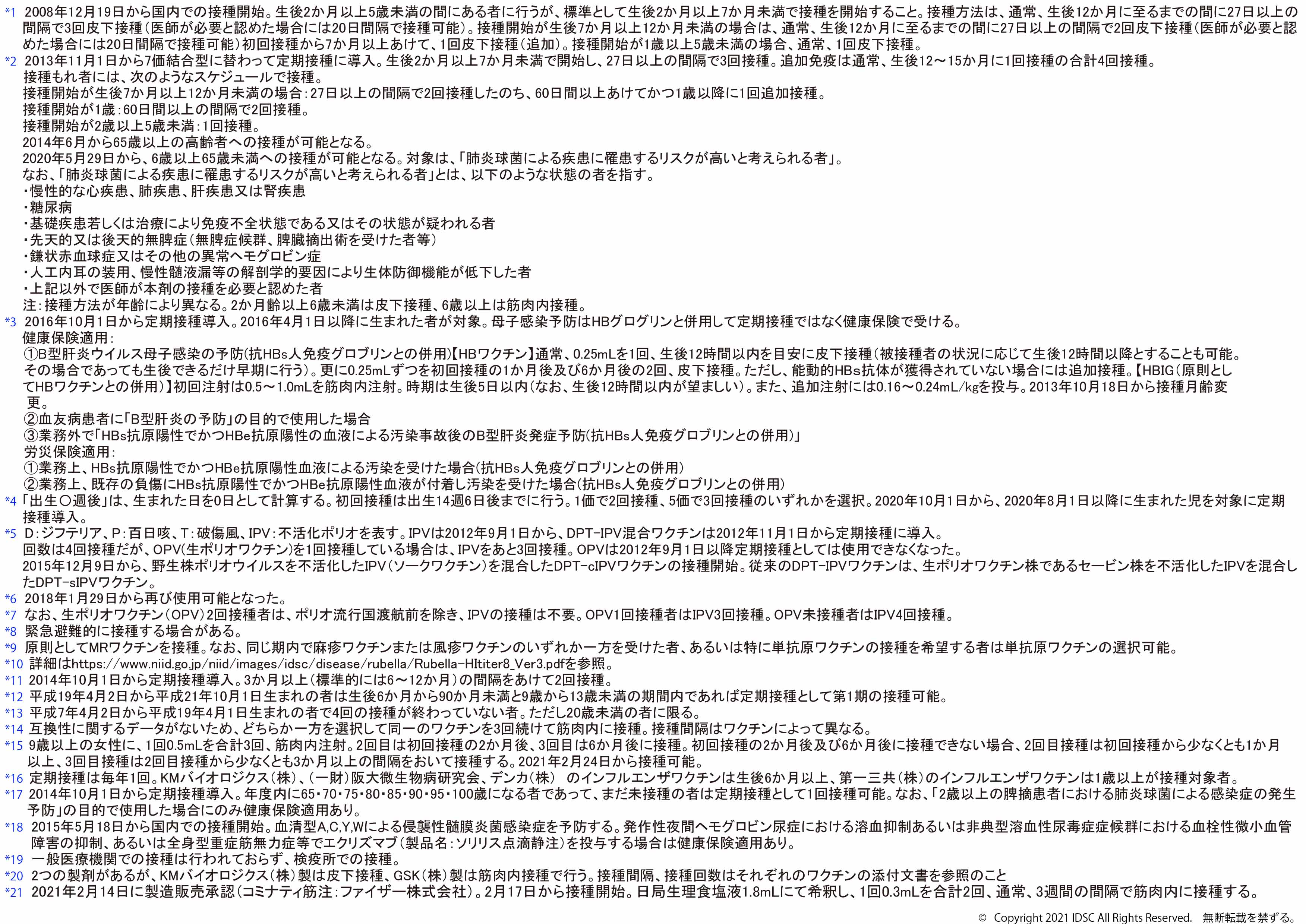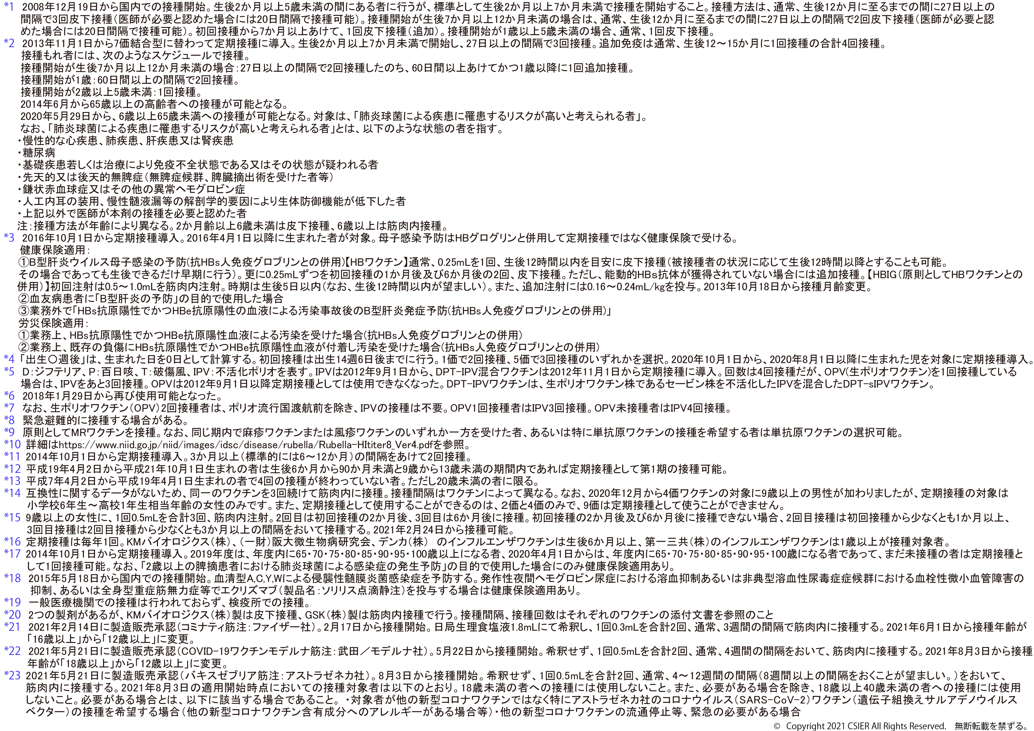 ※2025年8月25日版 変更点:ヒトパピローマウイルスワクチンの注釈(*12)へ9価ワクチンの対象に9歳以上の男性への接種が加わったことに伴う変更を追記しました。