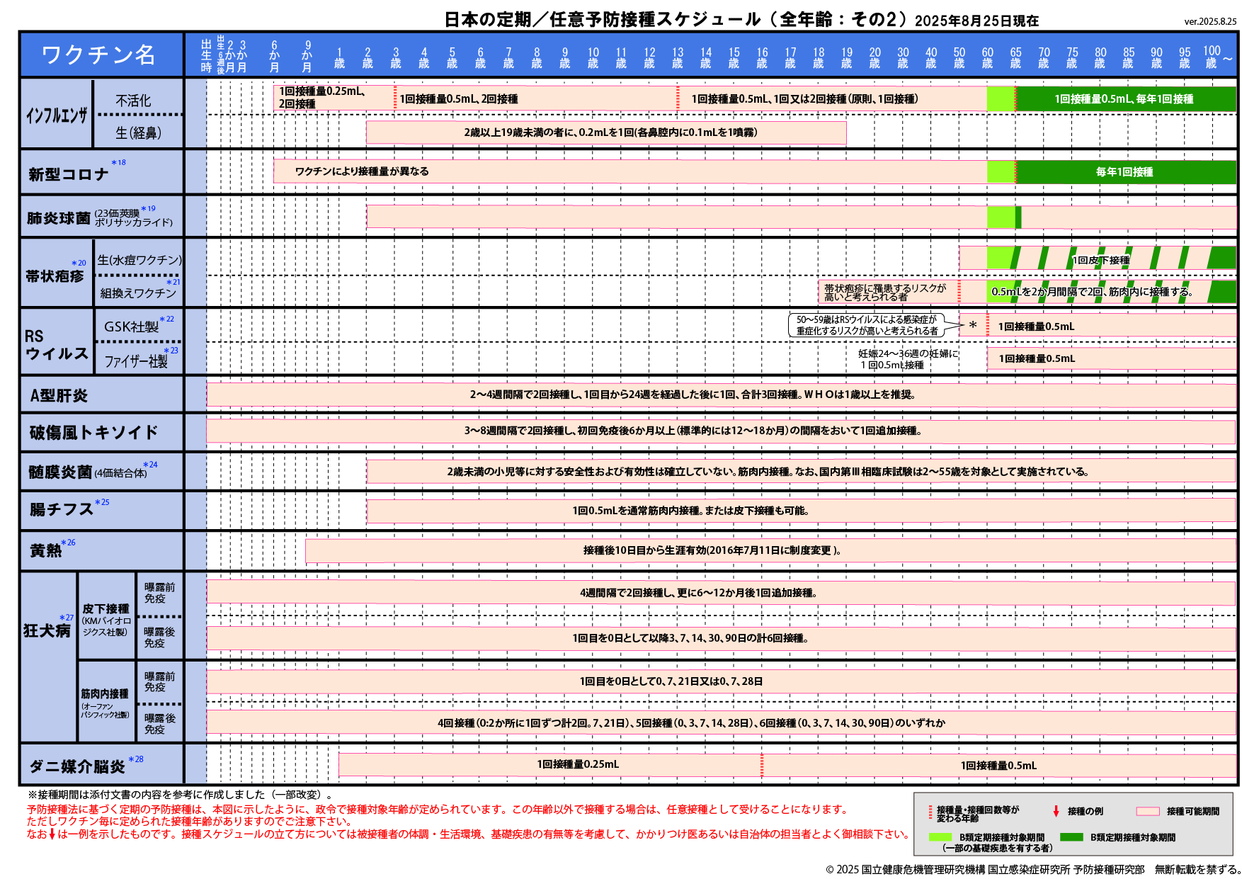 ※2025年6月30日版 変更点:腸チフスワクチン(任意接種)を追加しました