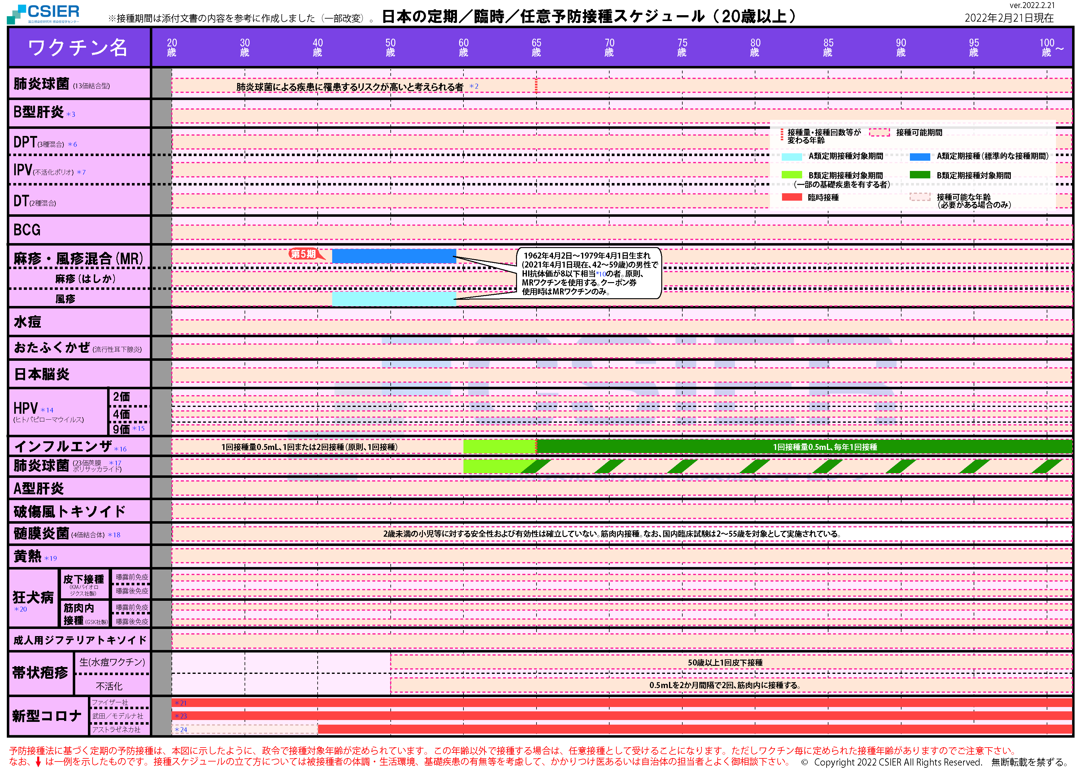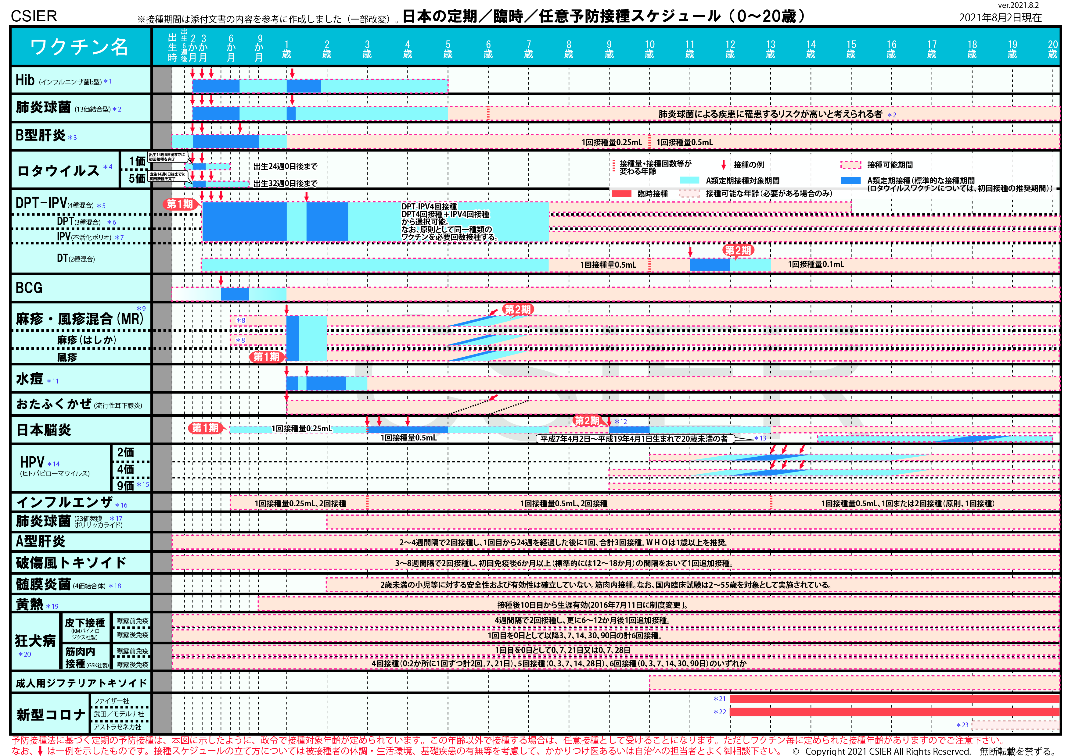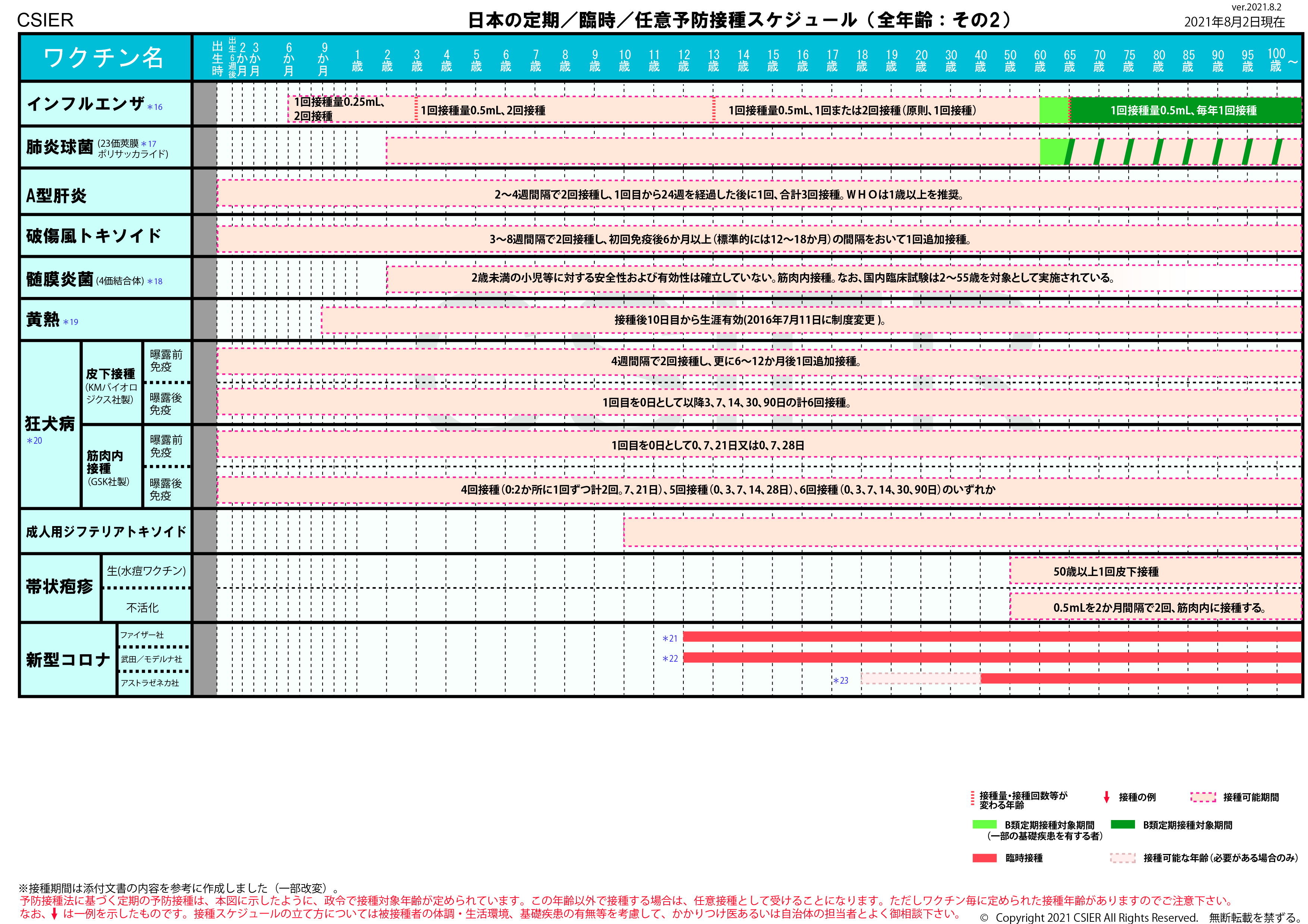 定期/臨時予防接種スケジュール [2021年8月2日~2022年2月20日] 全年齢