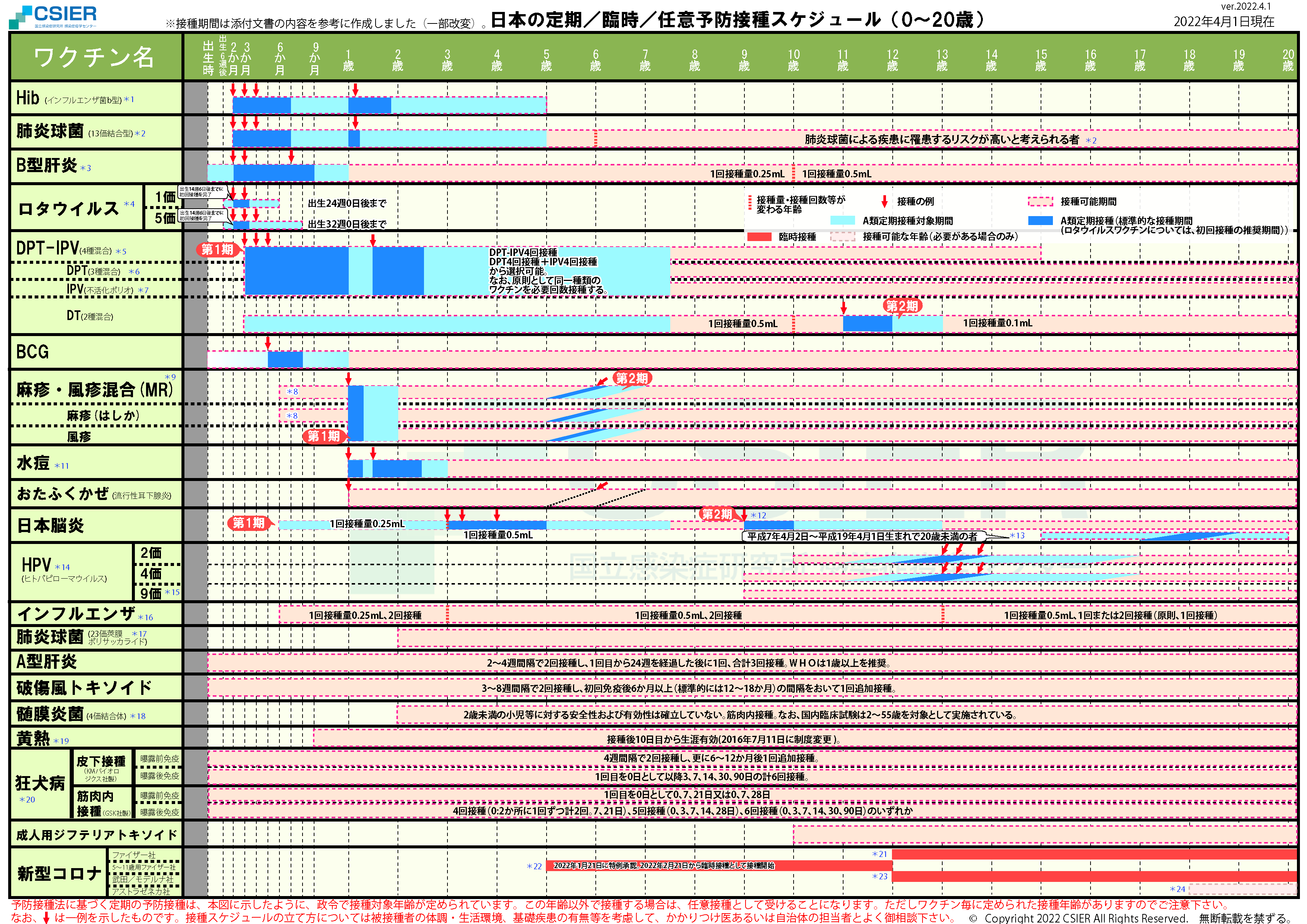 定期/臨時予防接種スケジュール [2022年4月1日~2022年5月24日] 全年齢