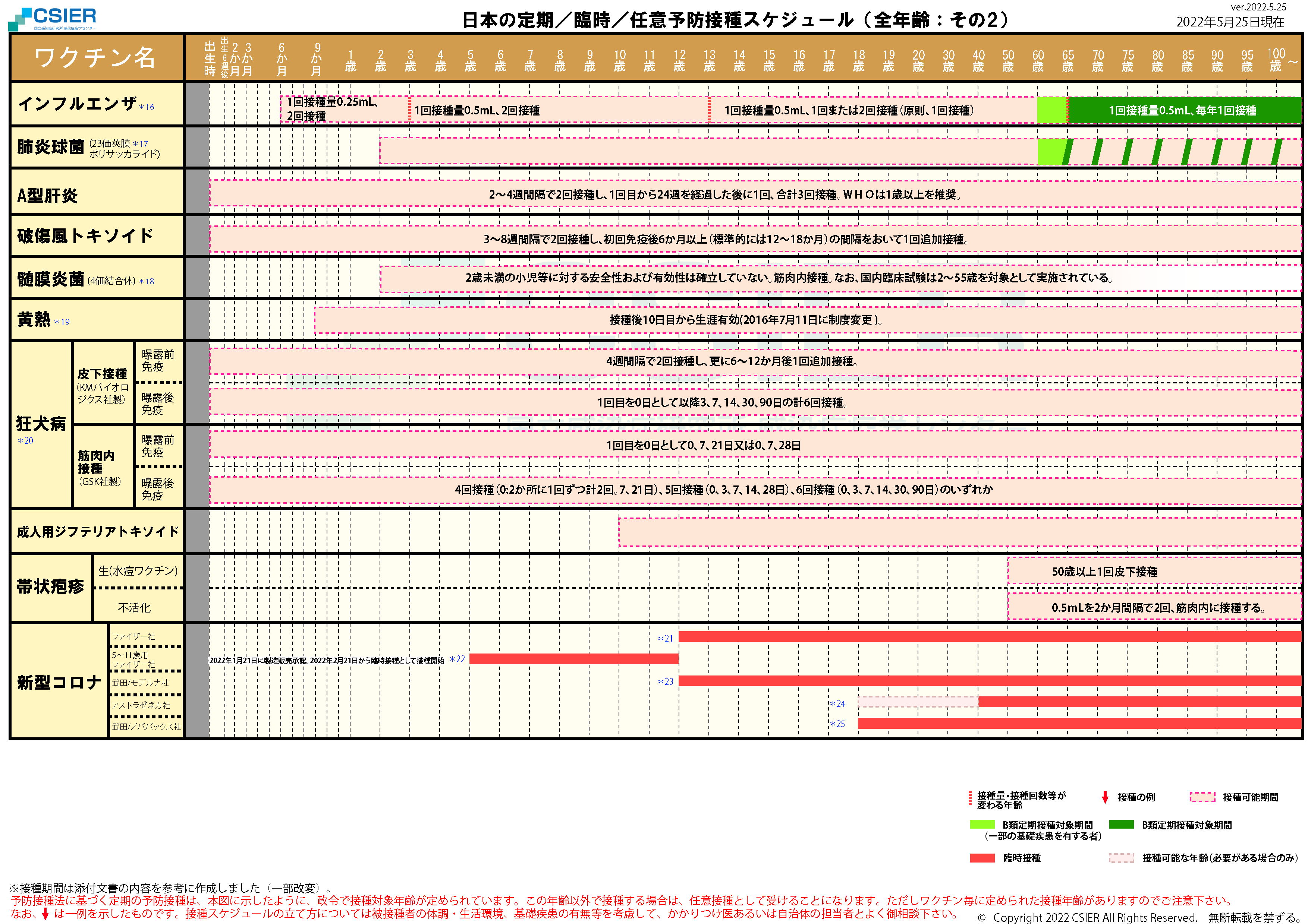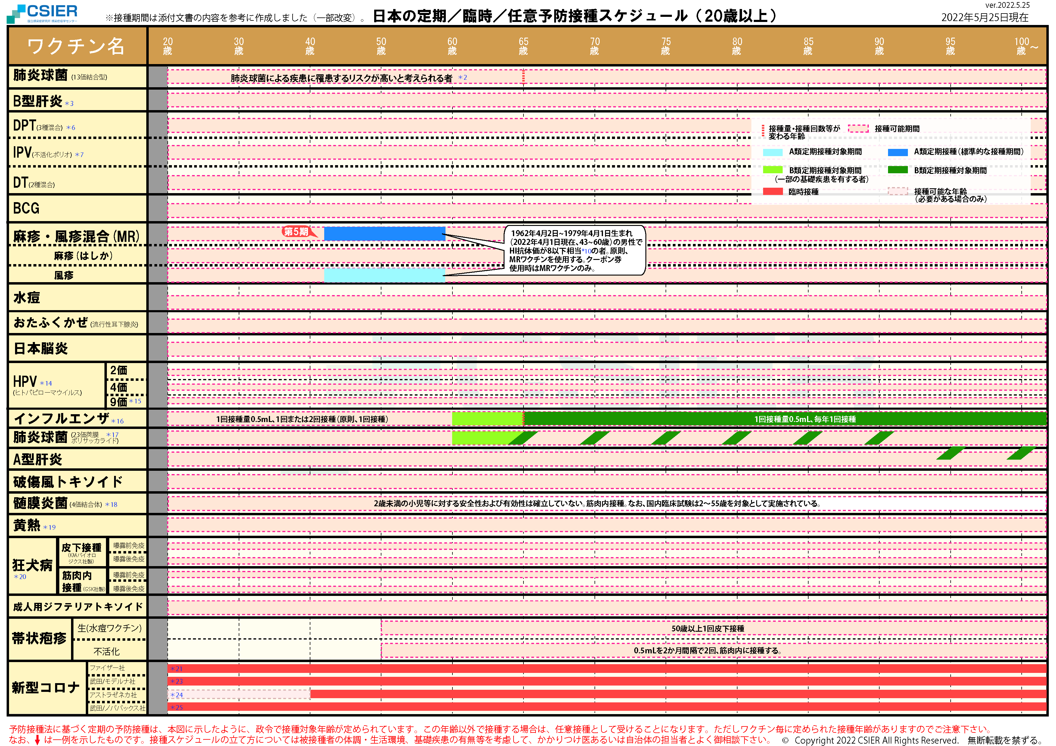 定期/臨時予防接種スケジュール [2022年5月25日~2022年7月31日] 全年齢