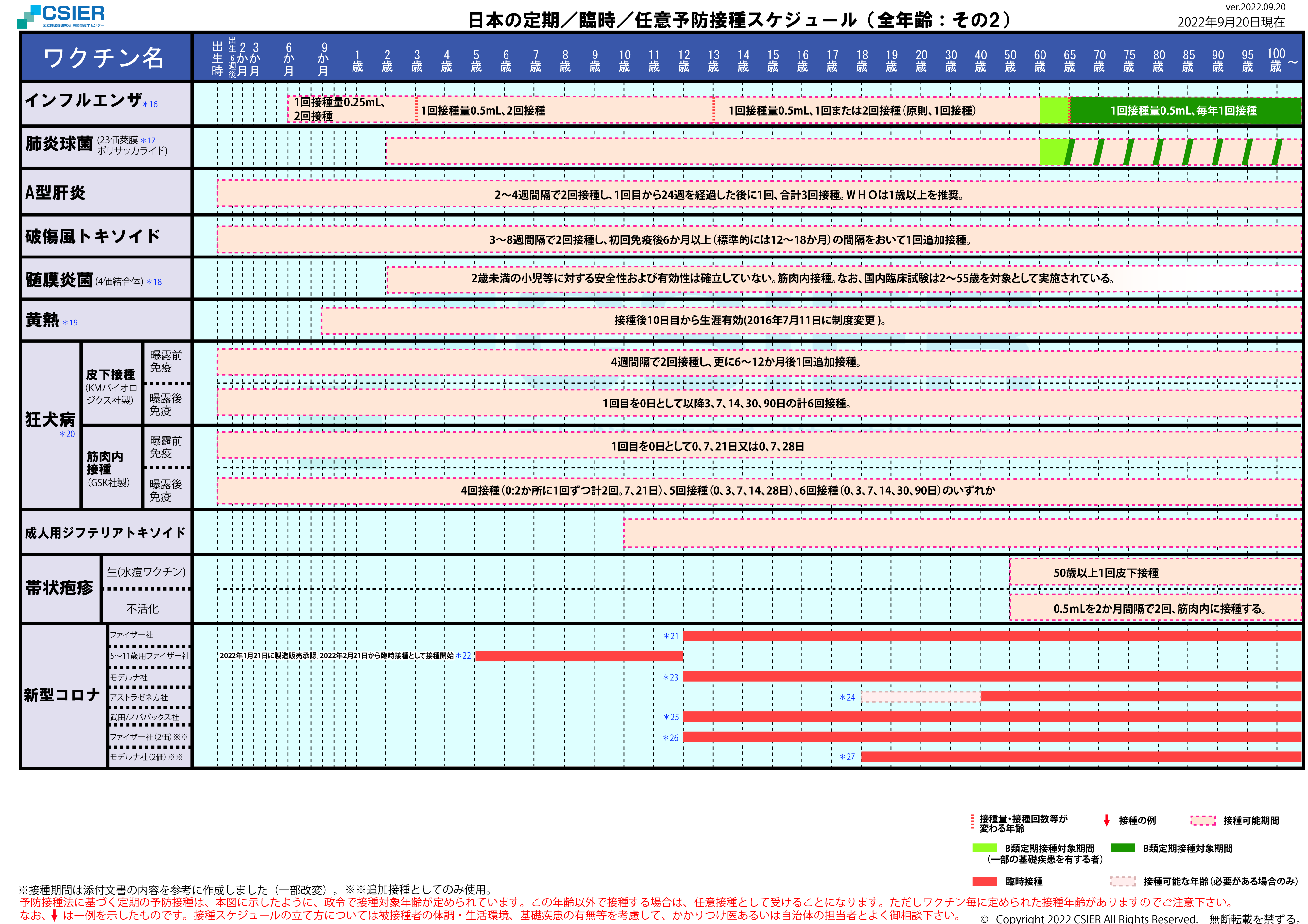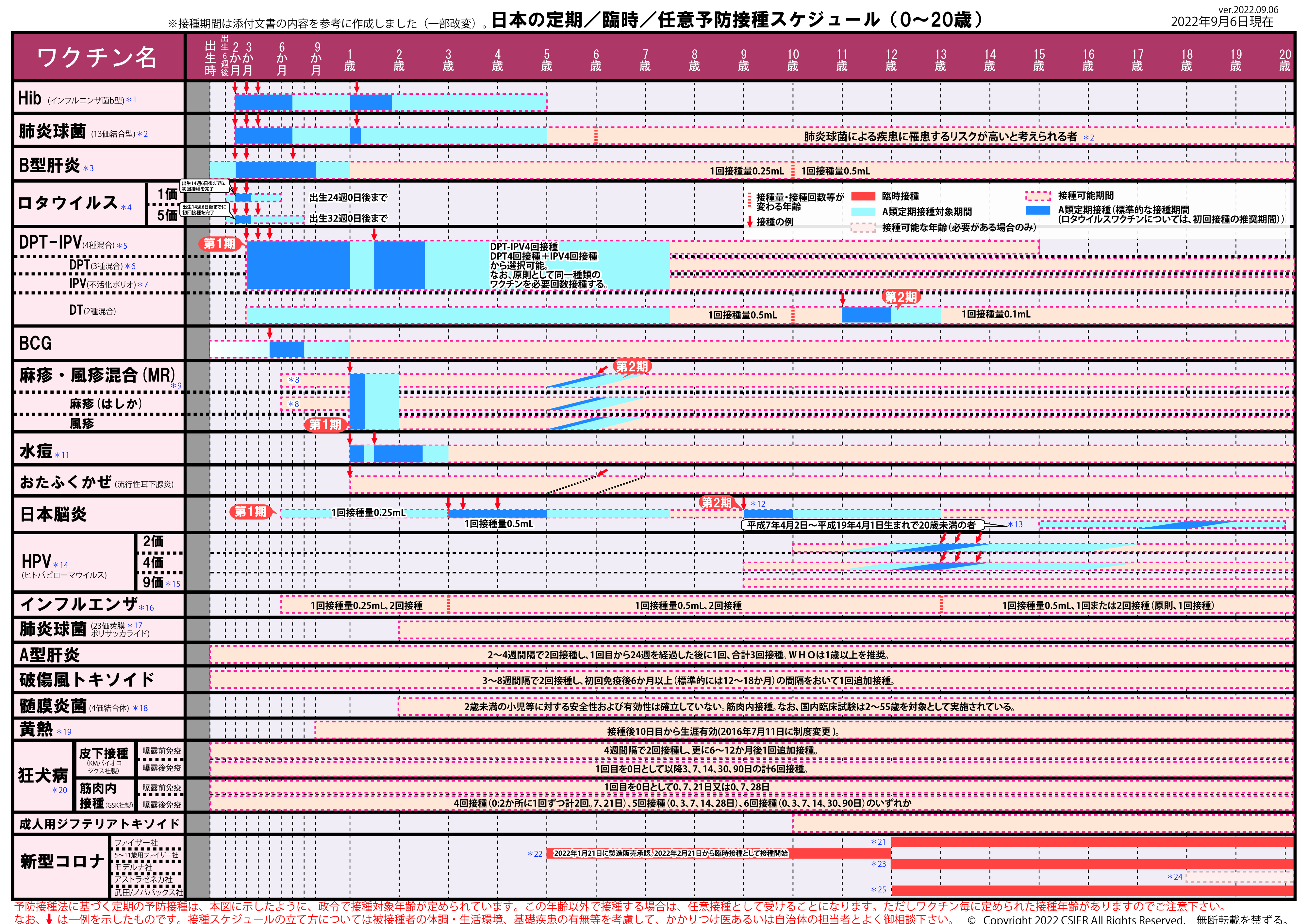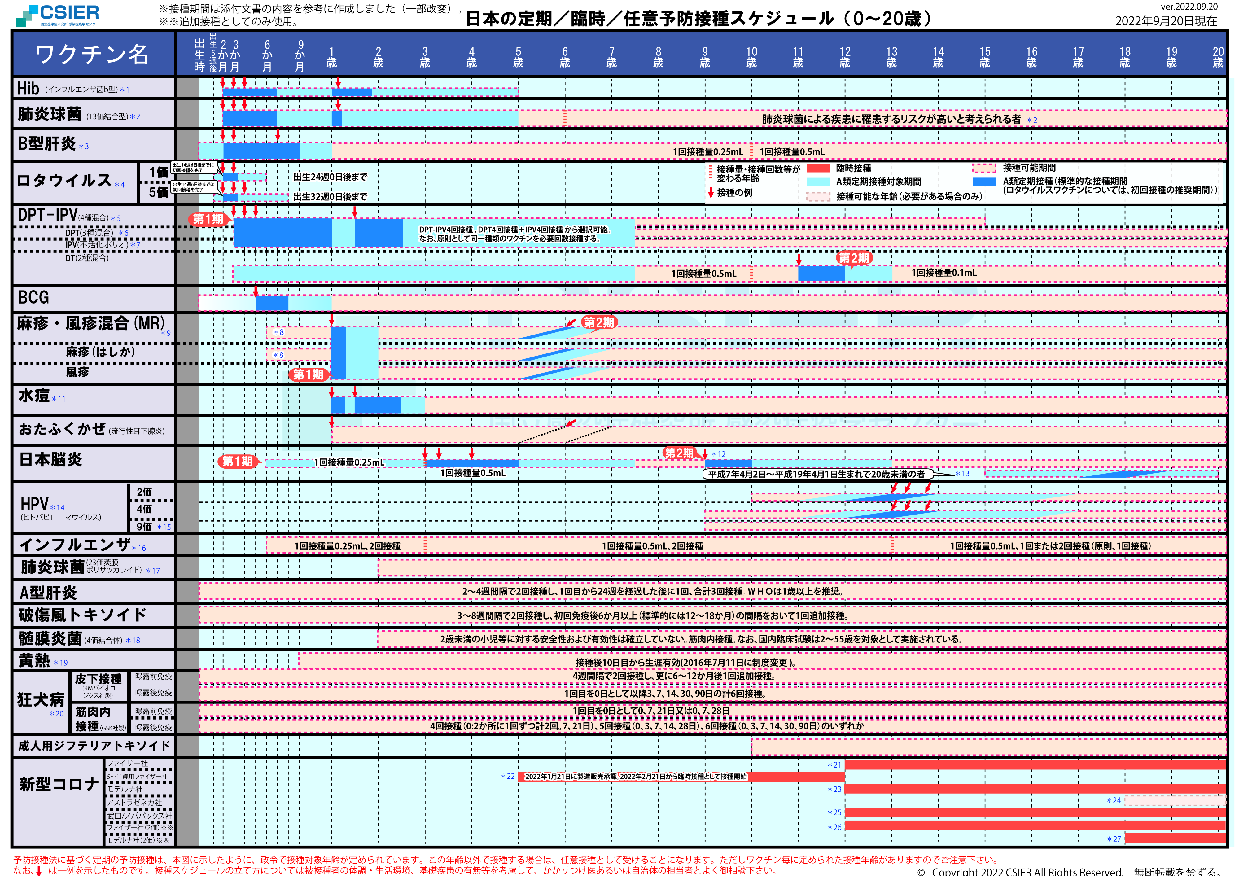 定期/臨時予防接種スケジュール [2022年9月6日~2022年9月19日] 全年齢