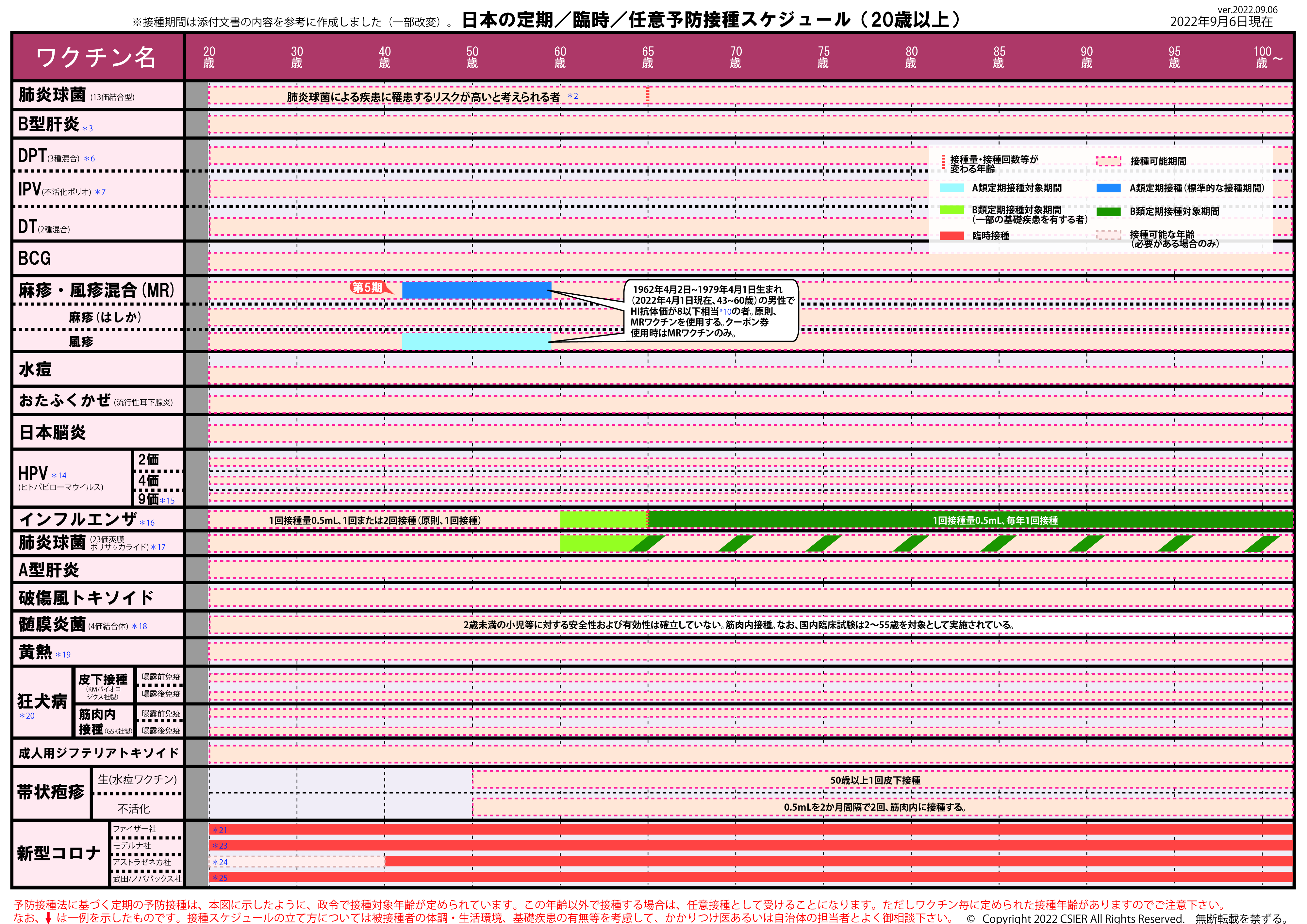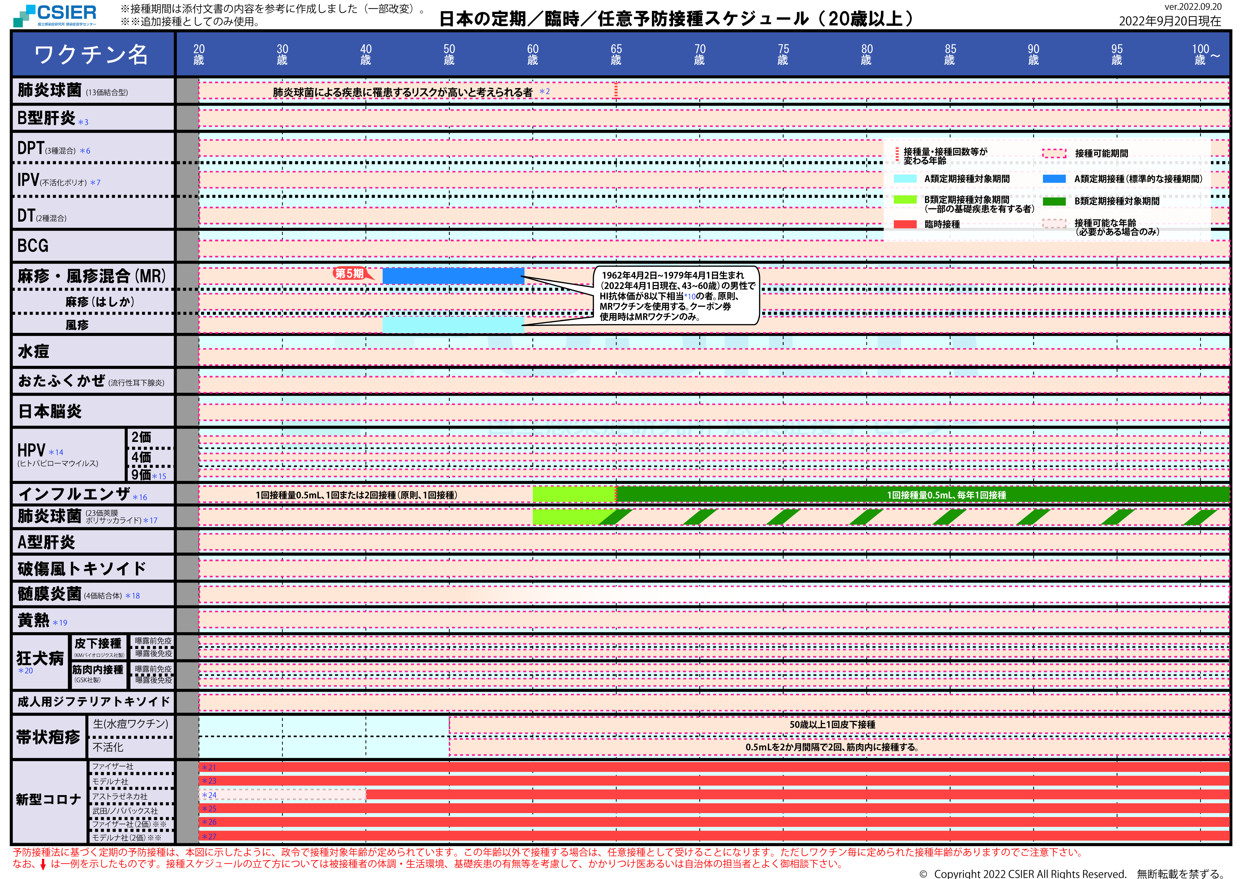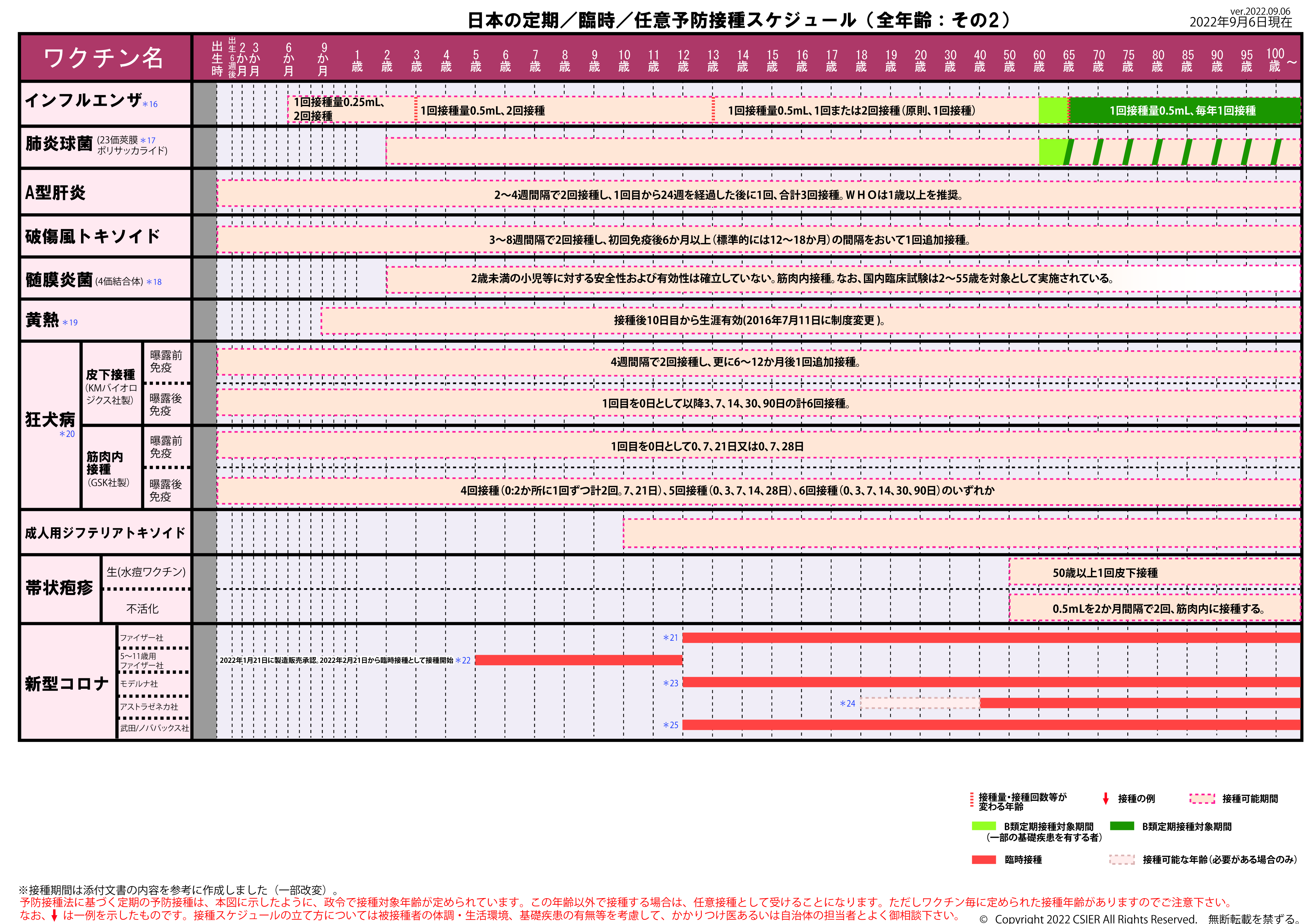 定期/臨時予防接種スケジュール [2022年9月6日~2022年9月19日] 全年齢