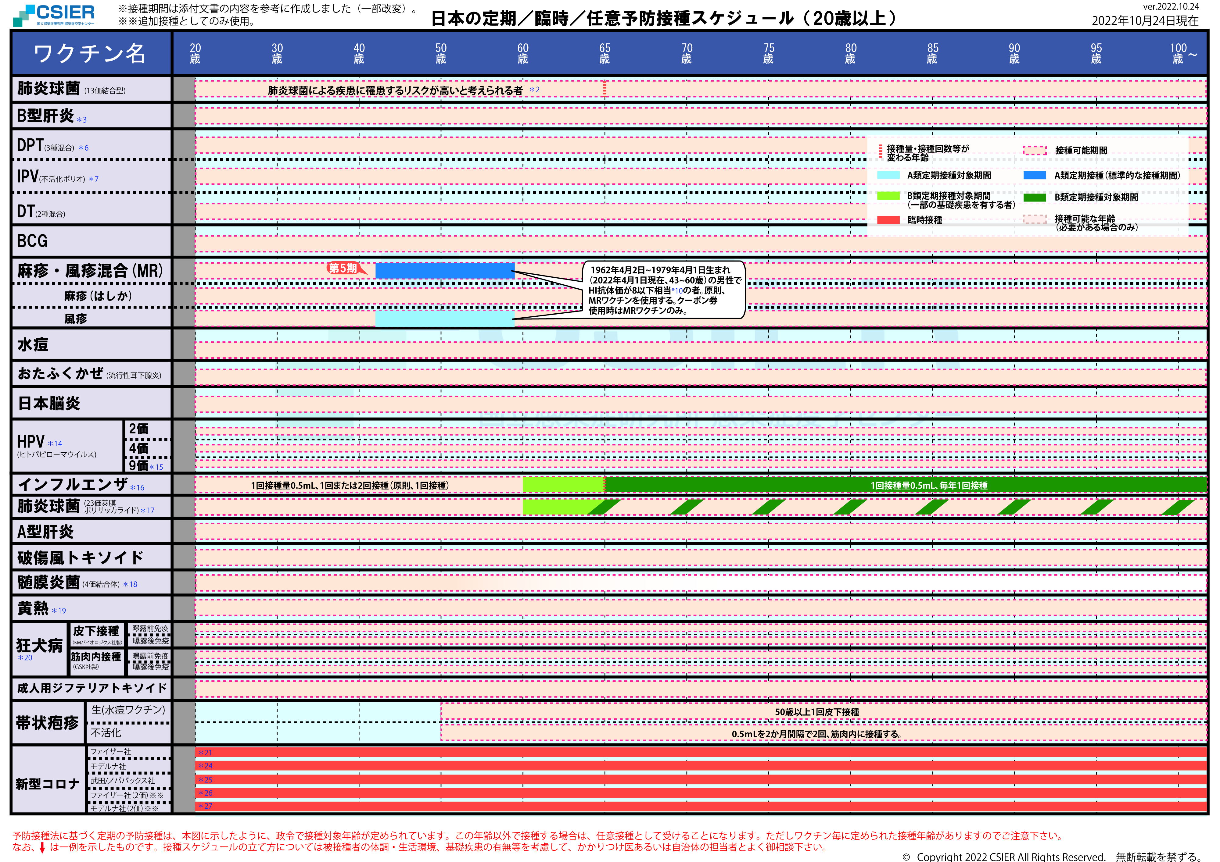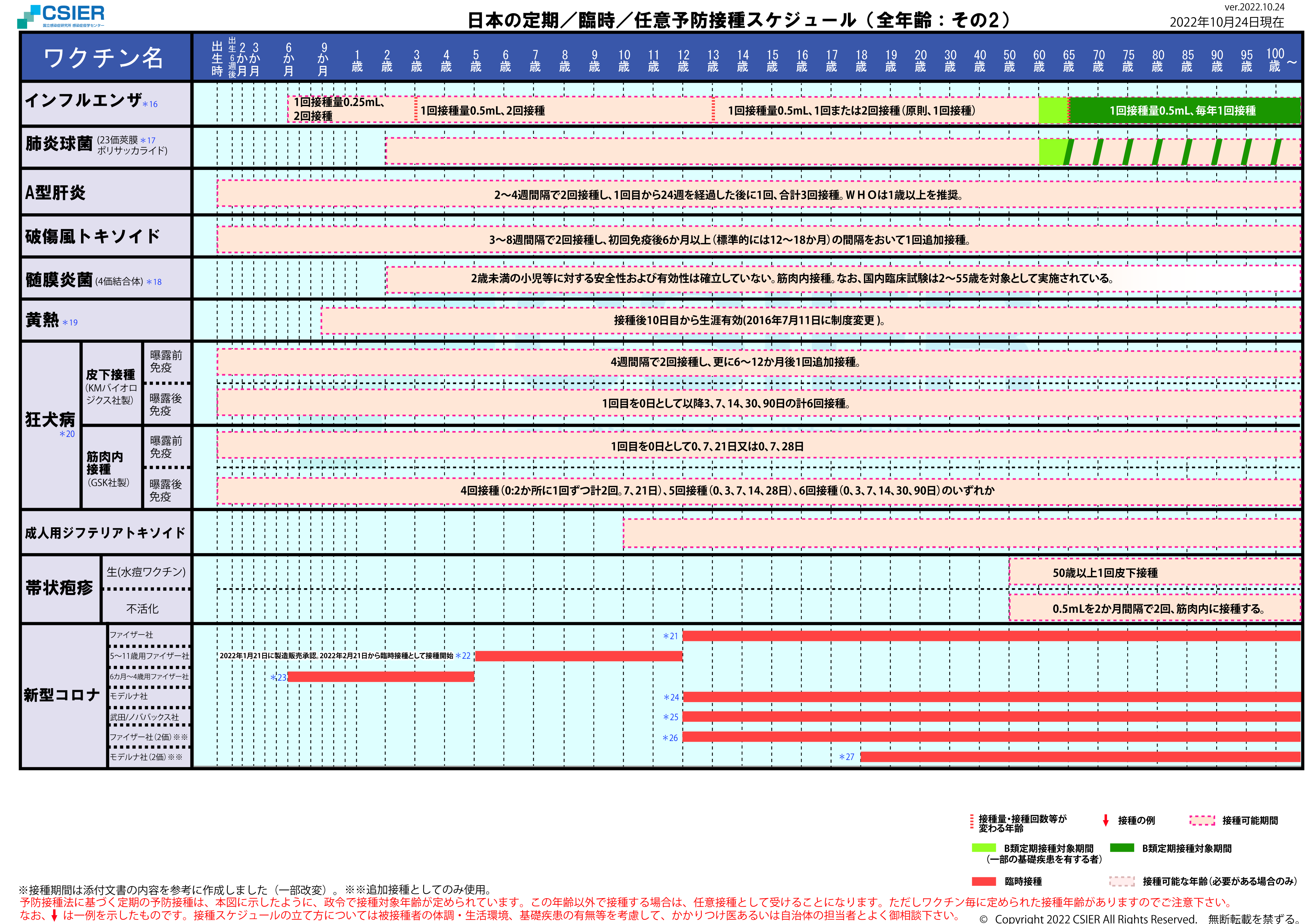 定期/臨時予防接種スケジュール [2022年10月24日~2022年11月7日] 全年齢