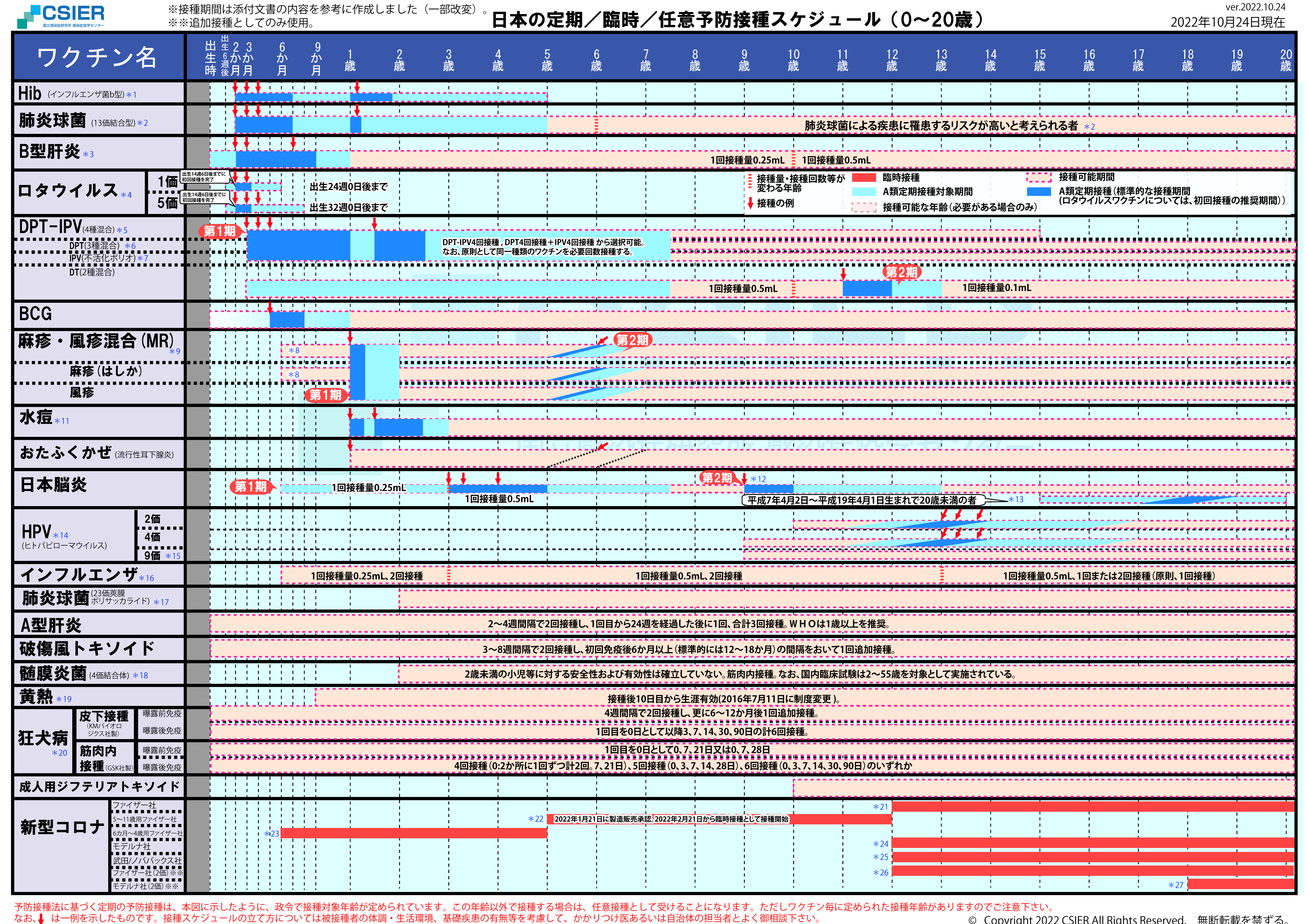 定期/臨時予防接種スケジュール [2022年9月20日~2022年10月23日] 全年齢