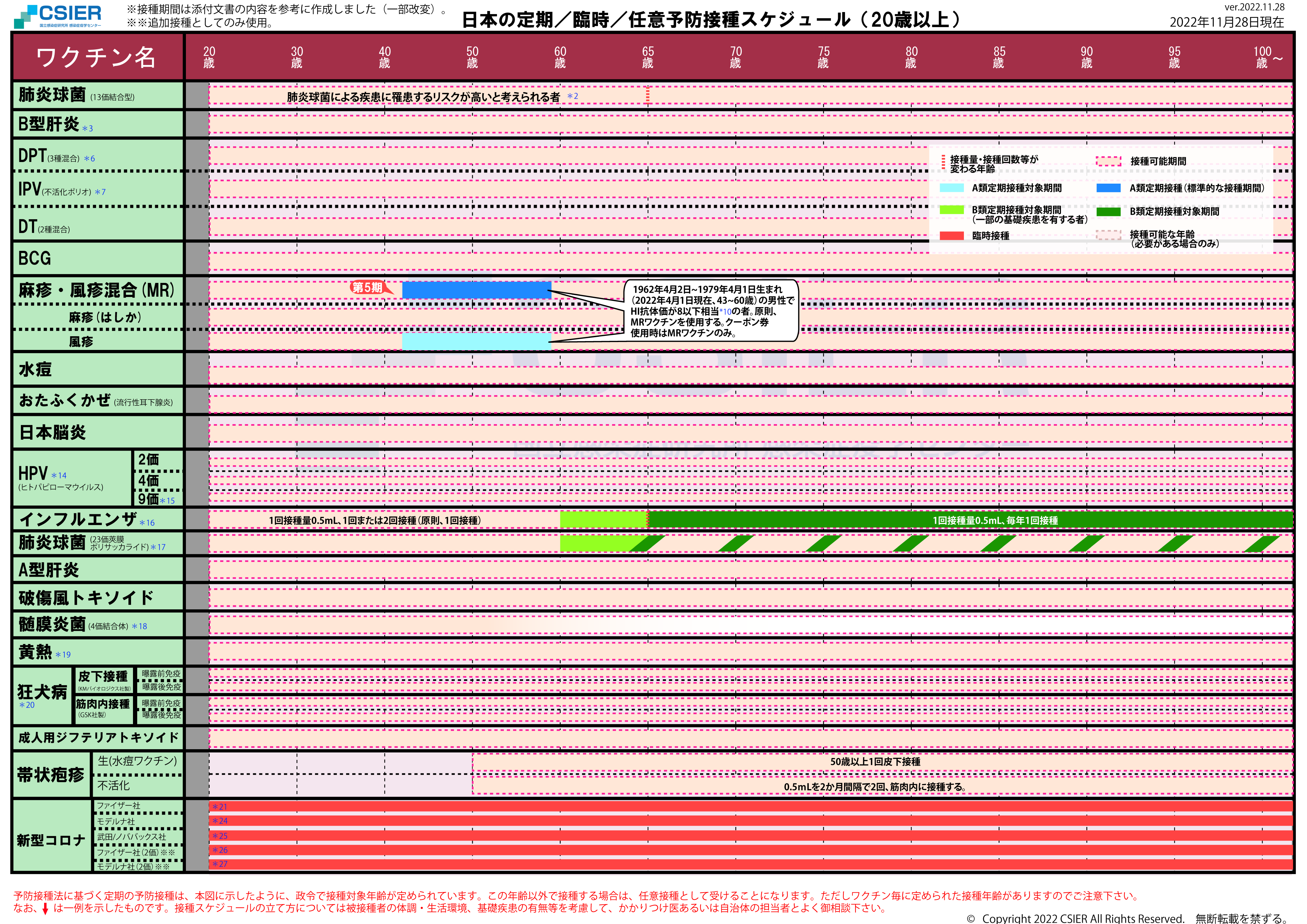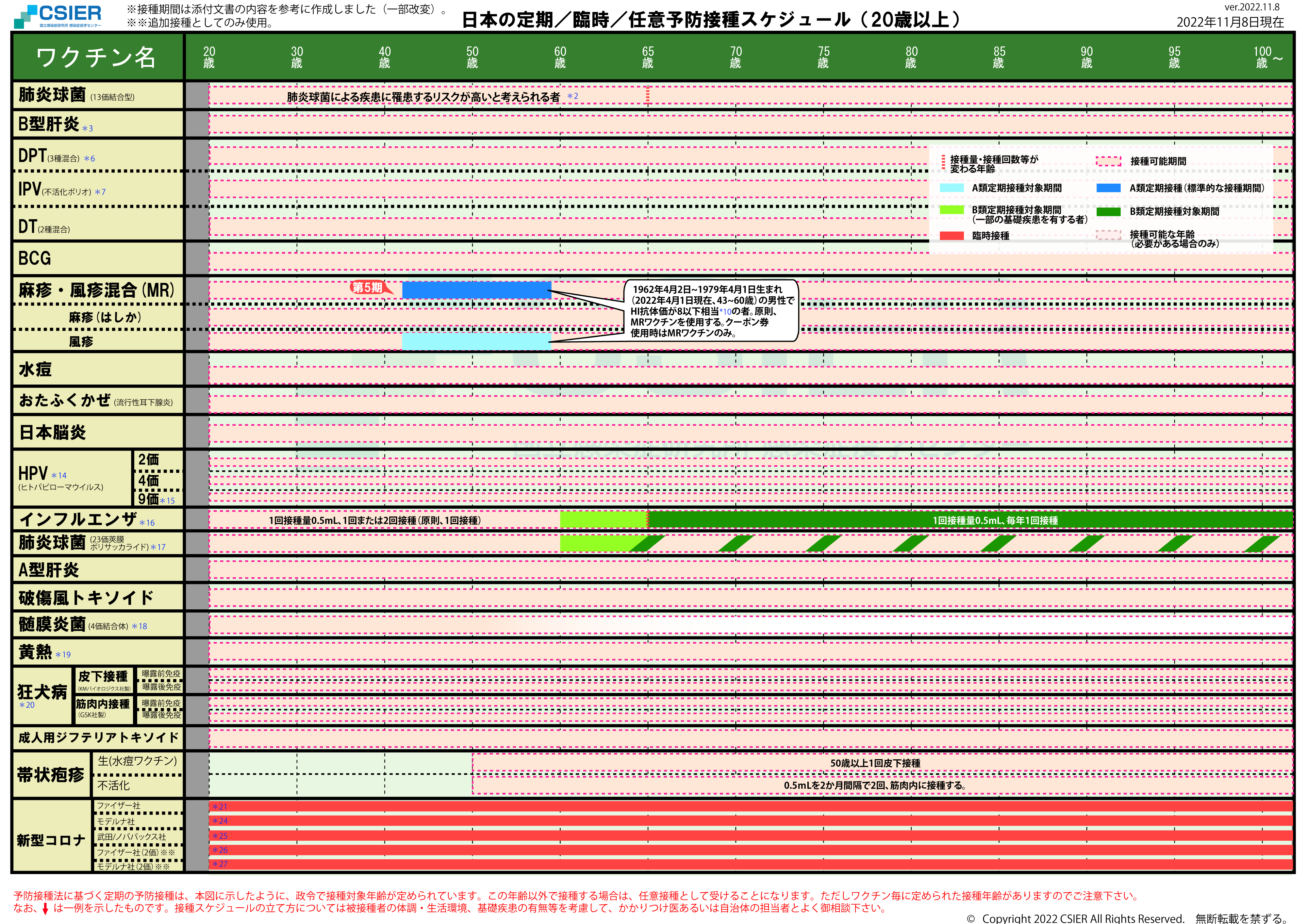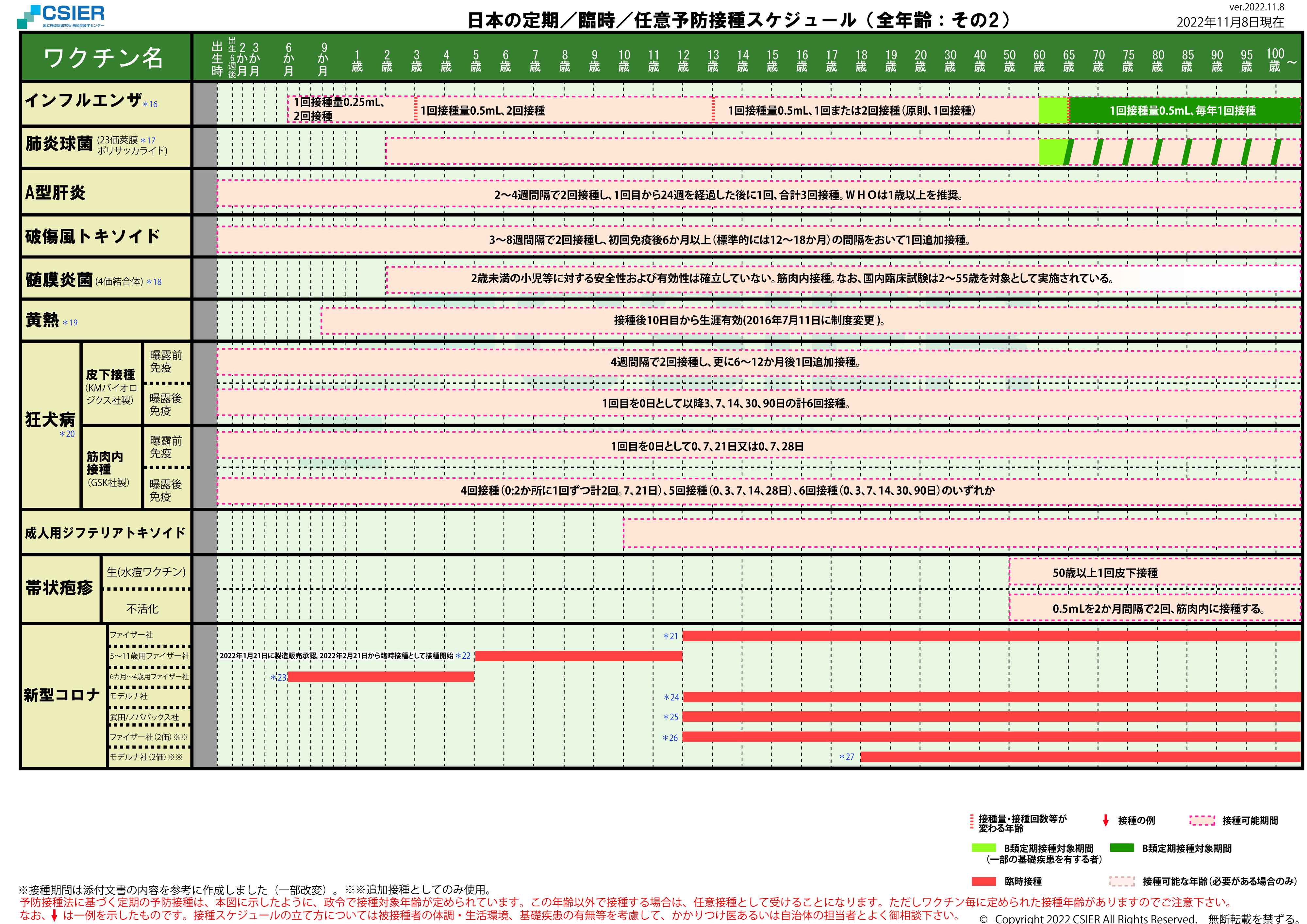 定期/臨時予防接種スケジュール [2022年11月8日~2022年11月27日] 全年齢