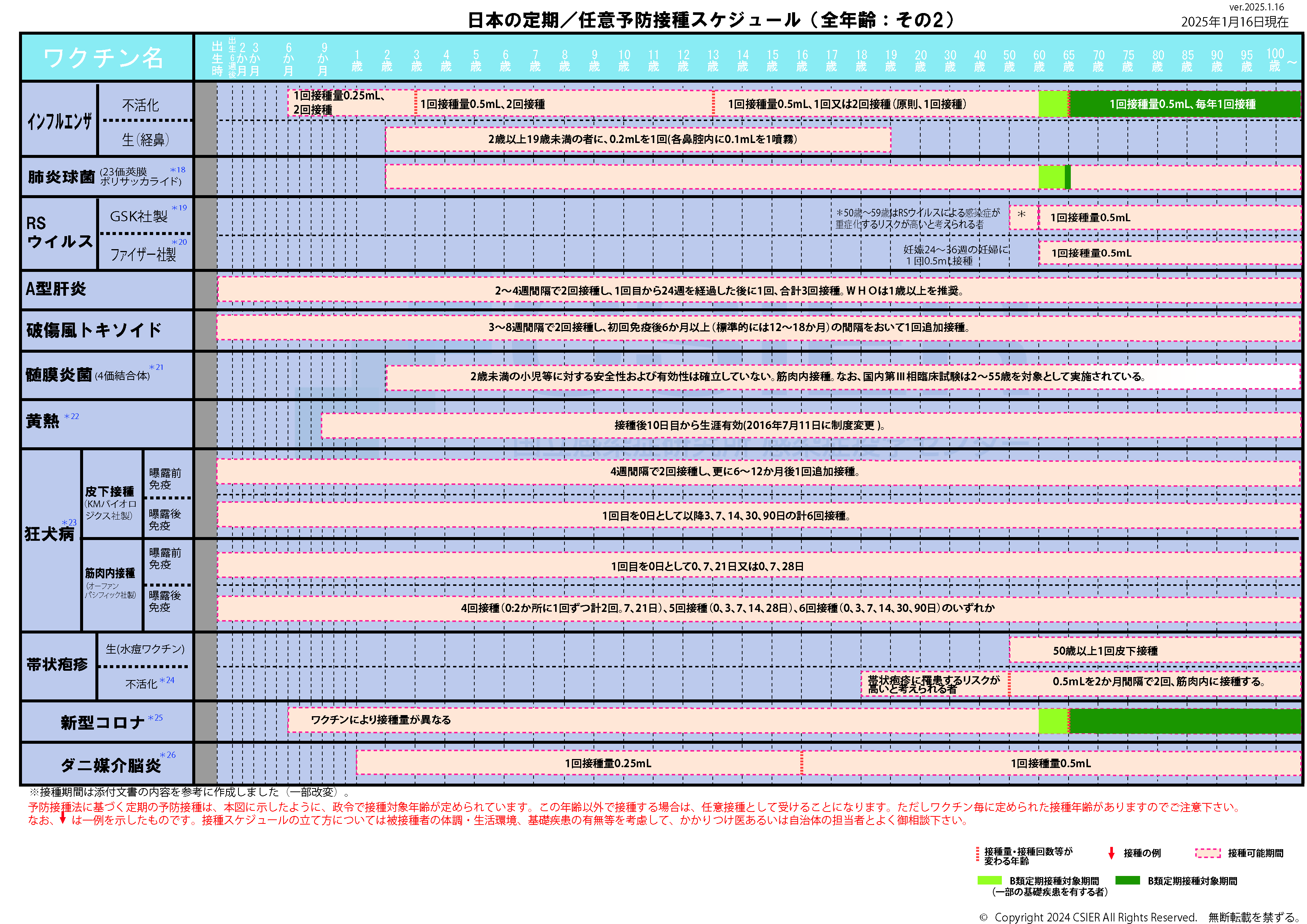 定期予防接種スケジュール [2025年1月16日~2025年3月31日] 全年齢