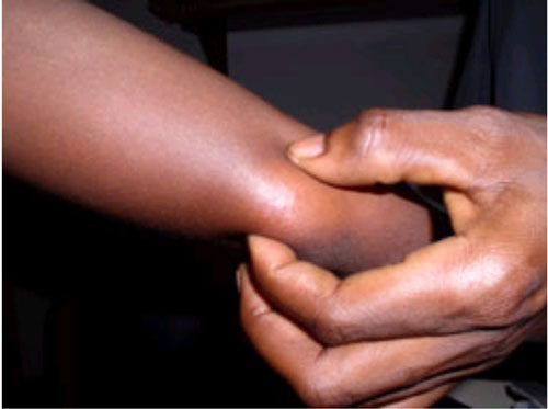 図2 腕の皮下結節(ブルーリ潰瘍、WHO)