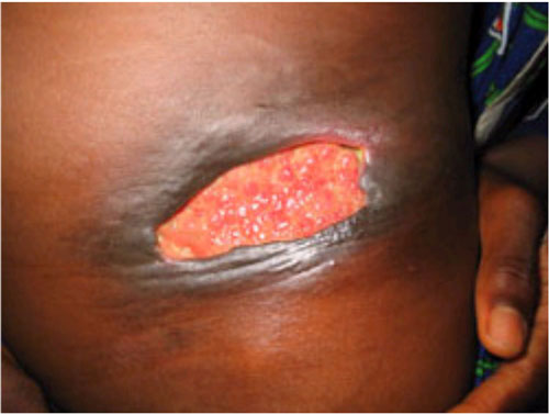 図1 びらんを有する丘疹(ブルーリ潰瘍、WHO)
