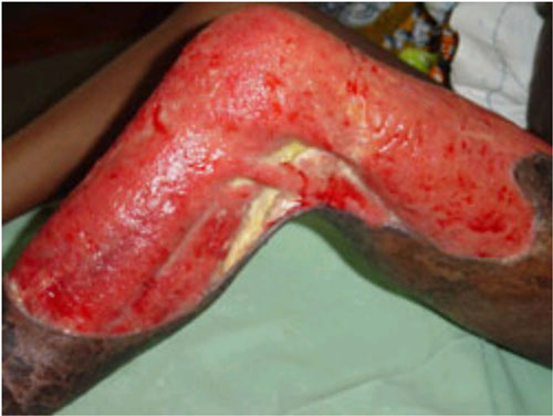 図4 広範囲にわたる潰瘍(ブルーリ潰瘍、WHO)