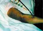 図2.重症マラリア症例における出血傾向。左上肢に広範な出血斑がみられる。
