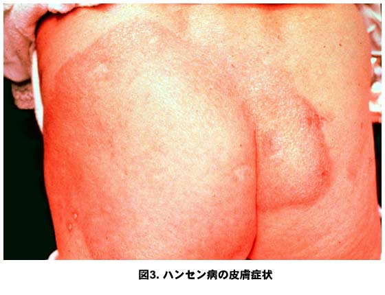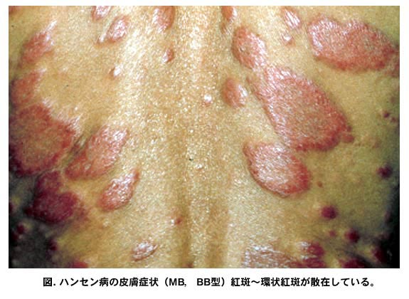 図6.ハンセン病の皮膚症状(MB,BL型)左右対称性の紅斑~環状紅斑局面