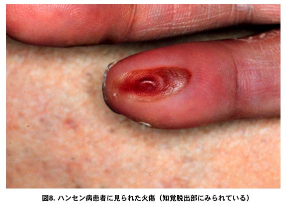 図8.ハンセン病患者に見られた火傷(知覚脱出部にみられている)