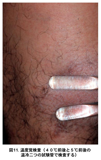図11.温度覚検査(40℃前後と5℃前後の温冷二つの試験管で検査する)