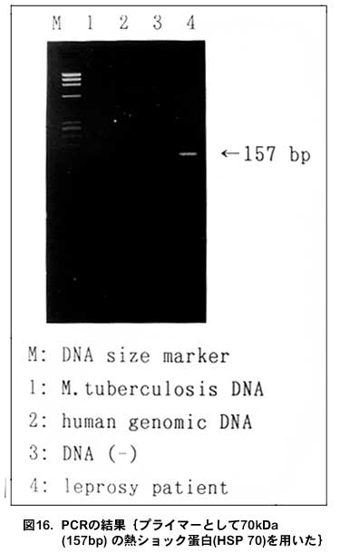 皮膚組織や組織液などかららい菌特異的なDNAを証明する検査です。ハンセン病研究センターで検査可能です。(図16)