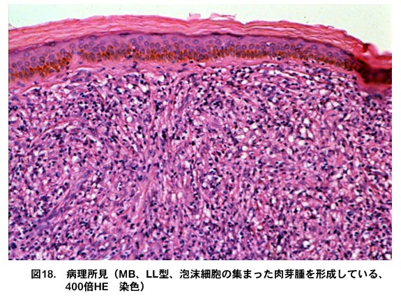 図18.病理所見(MB、LL型、泡沫細胞の集まった肉芽腫を形成している、40倍 HE染色)