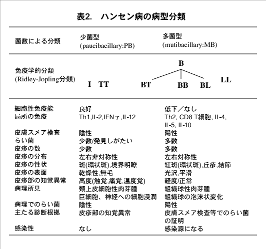 表2.ハンセン病の病型分類