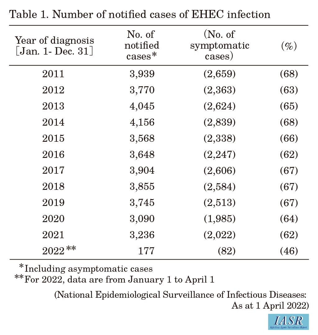 IASR 43(5), 2022【THE TOPIC OF THIS MONTH】Enterohemorrhagic Escherichia coli (EHEC) infection in Japan, as at March 2022
