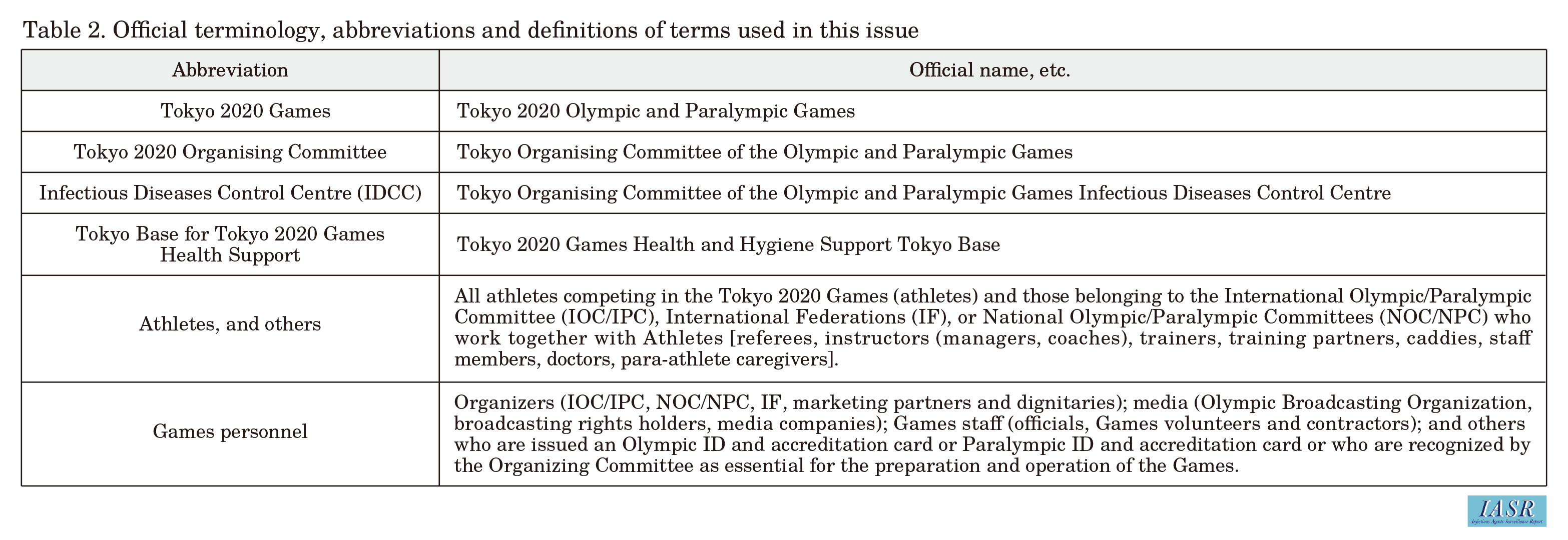 As there is a global need to improve the capacity to cope with health crises, the preparatory process for “mass gatherings” planned during the time of the COVID-19 pandemic is seen as an important opportunity, and it is strongly hoped that the experiences and lessons learned from the Tokyo 2020 Games will be shared and utilized widely in the future.