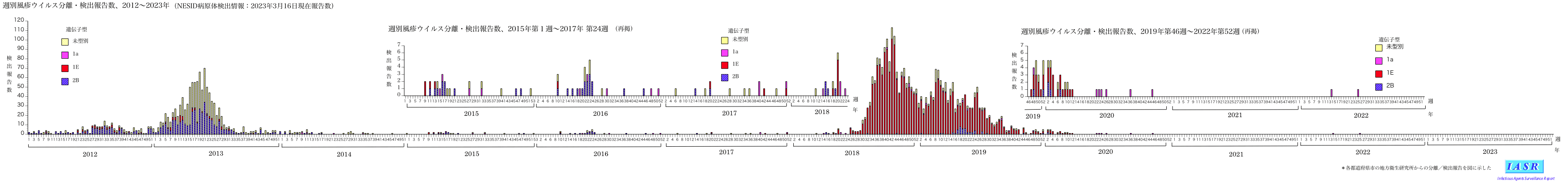 注:データは、地方衛生研究所(地衛研)・保健所・検疫所からNESID病原体検出情報に登録された情報に基づく。感染症発生動向調査の定点およびその他の医療機関、保健所等で採取された検体から検出された病原体の情報が含まれる。