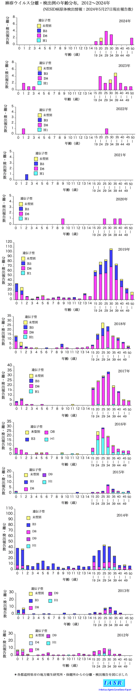 - 麻疹ウイルス年齢分布:2012~2024年
