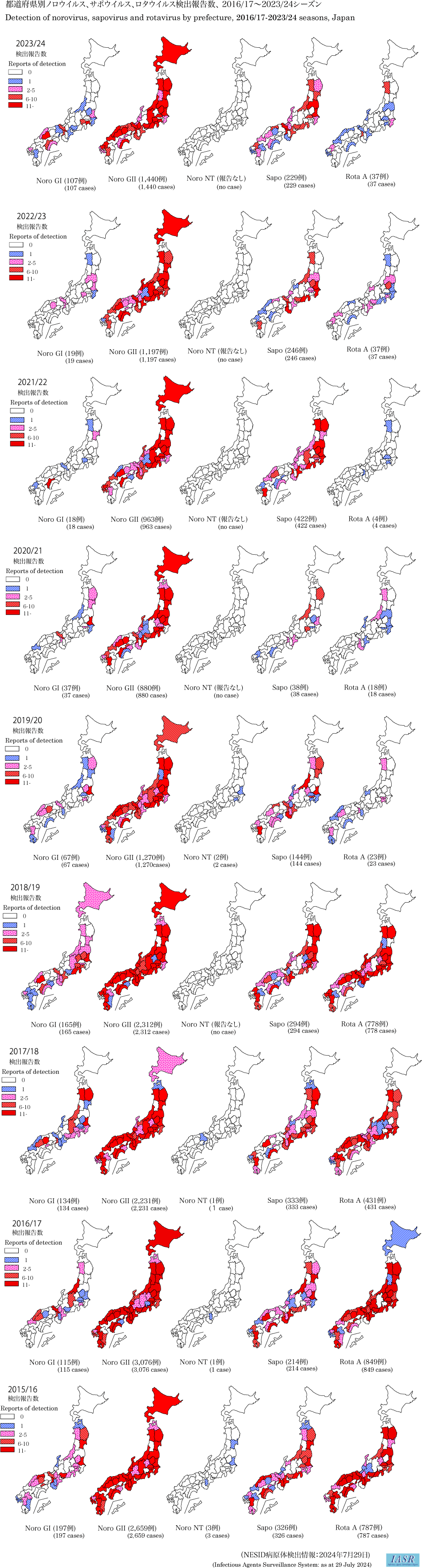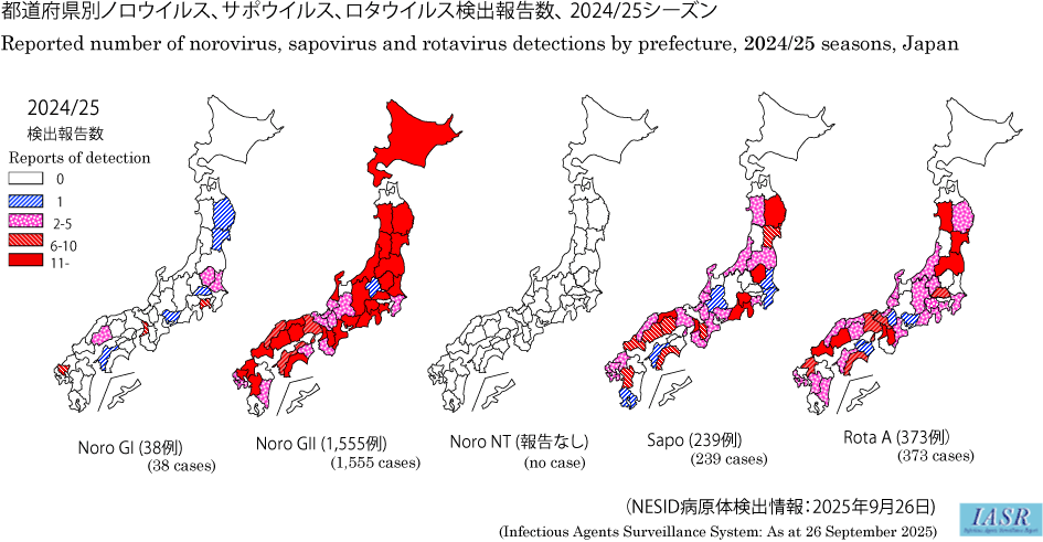 トップページ > サーベイランス > 病原微生物検出情報 (IASR) > 都道府県別ノロ・サポ・ロタウイルス検出報告数