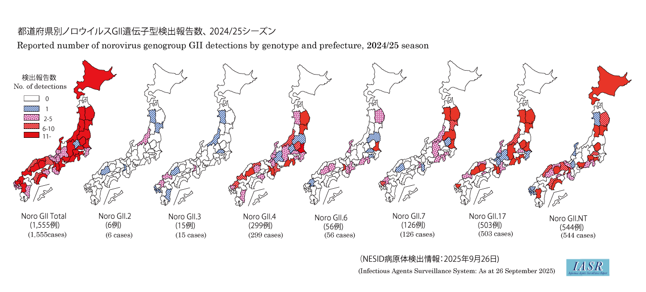 トップページ > サーベイランス > 病原微生物検出情報 (IASR) > 都道府県別ノロウイルスG2遺伝子型検出報告数