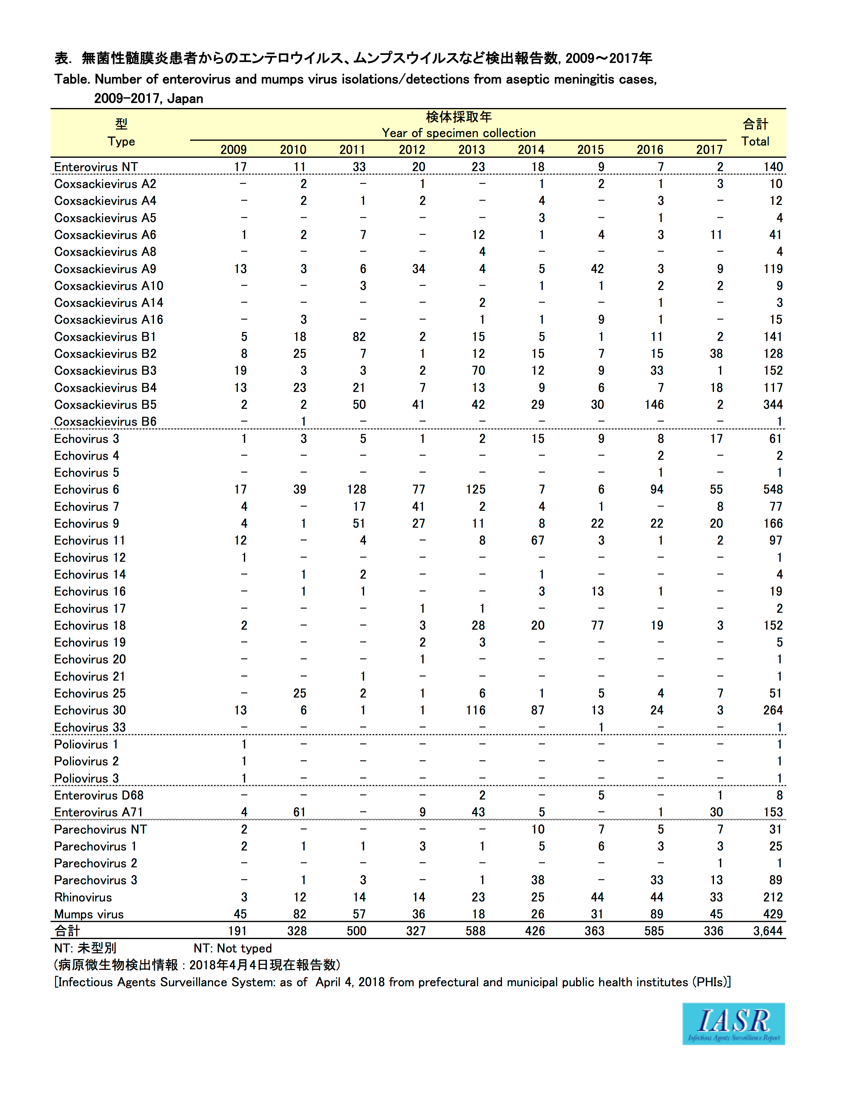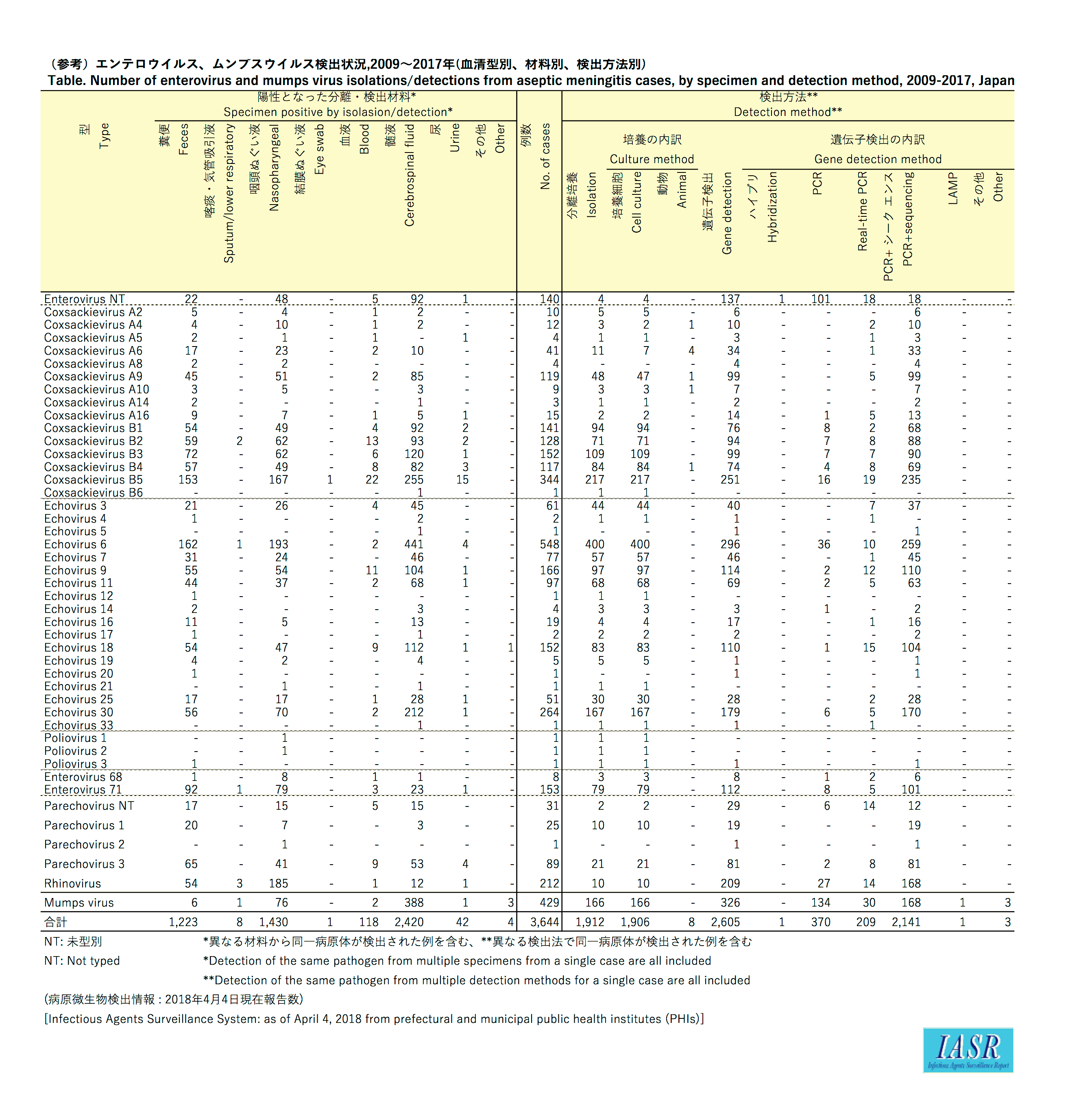 IASR 39(6), 2018【特集】無菌性髄膜炎患者からのウイルスの検出、2017年末現在