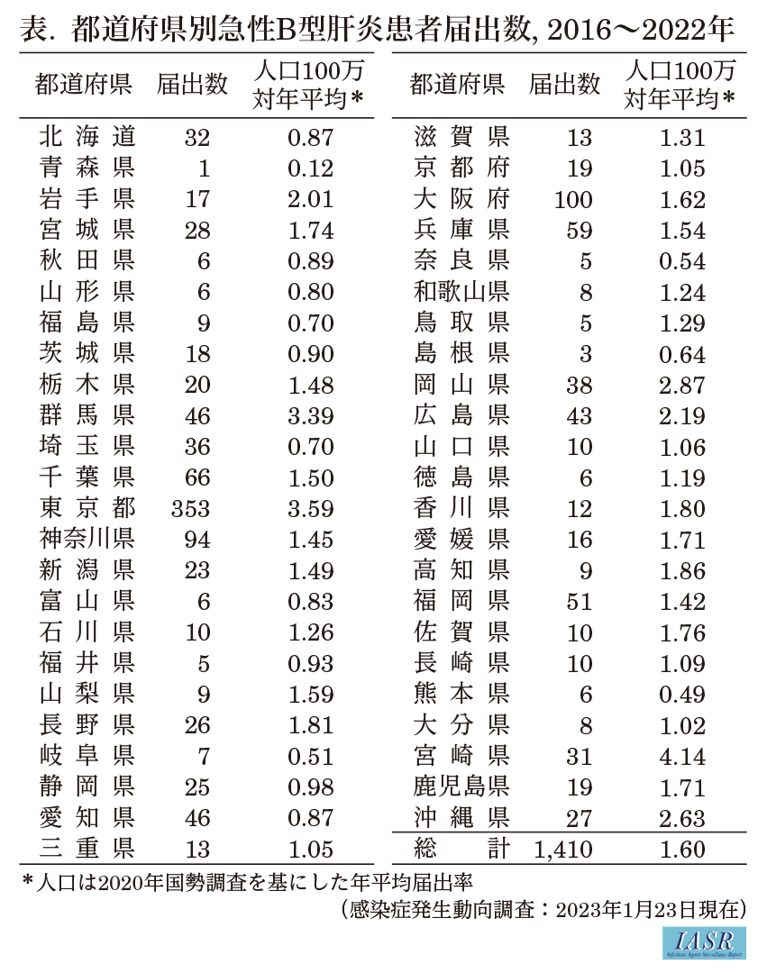 IASR 44(3), 2023【特集】急性B型肝炎 2016~2022年