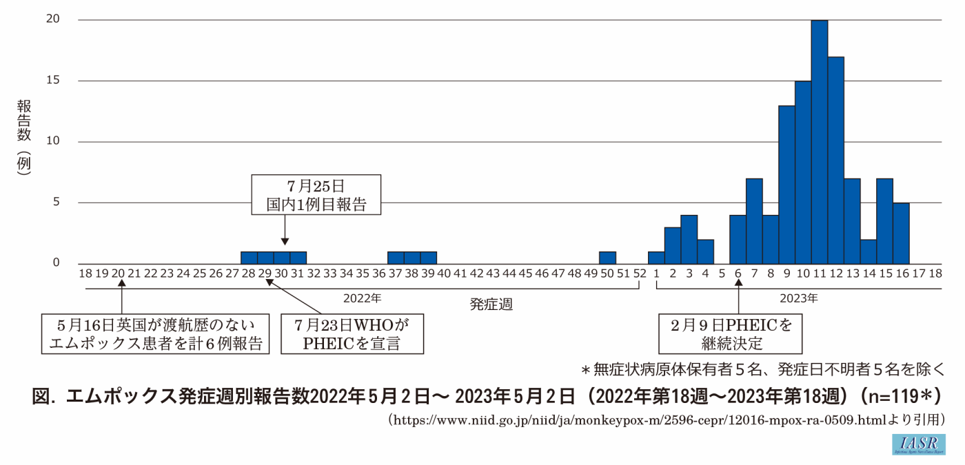 なお、感染症法に基づき届出されたエムポックスの直近の届出数については、感染症発生動向調査週報(IDWR)を参照いただきたい。