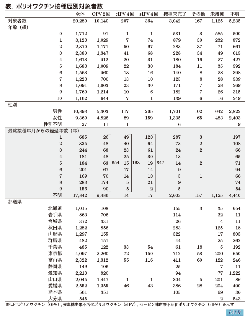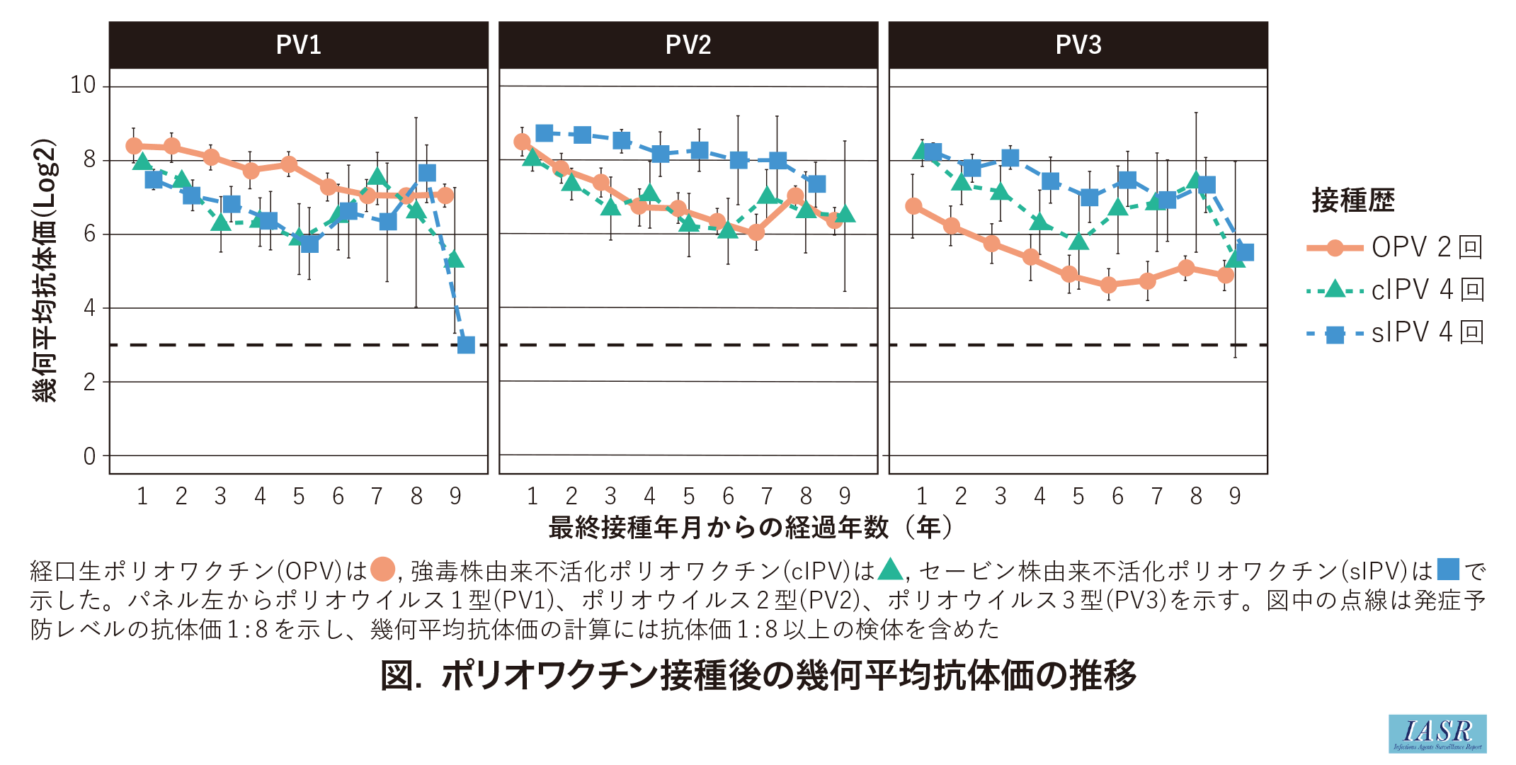 ポリオワクチン(OPV, cIPV, sIPV)接種後の血中抗体持続性: 1974~2022年度の感染症流行予測調査より