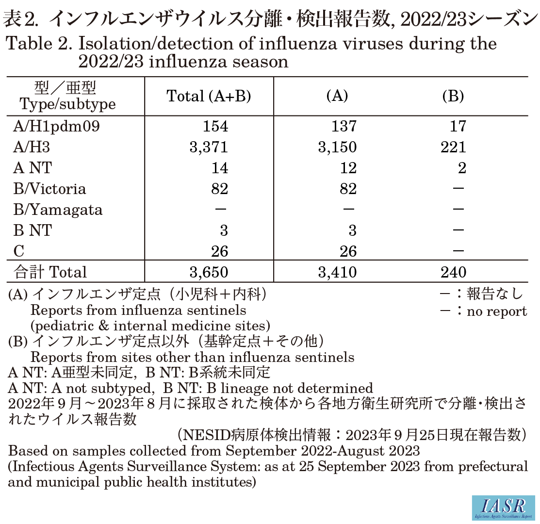 2022/23シーズンウイルス分離・検出状況(2023年9月25日現在)
