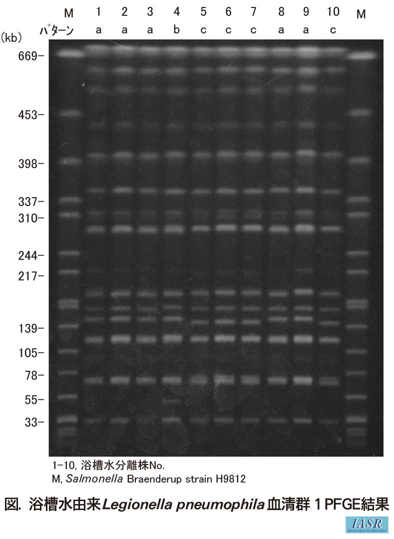 患者自宅浴槽水の検査の結果、5,600CFU/100mLのレジオネラ属菌が検出された。代表10株のレジオネラ免疫血清を用いた血清型別試験の結果は、すべてL.pneumophila血清群1であった。