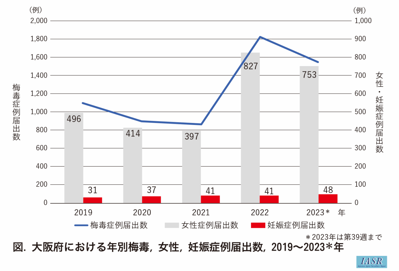 大阪府内の梅毒発生動向(2023年第1~39週)