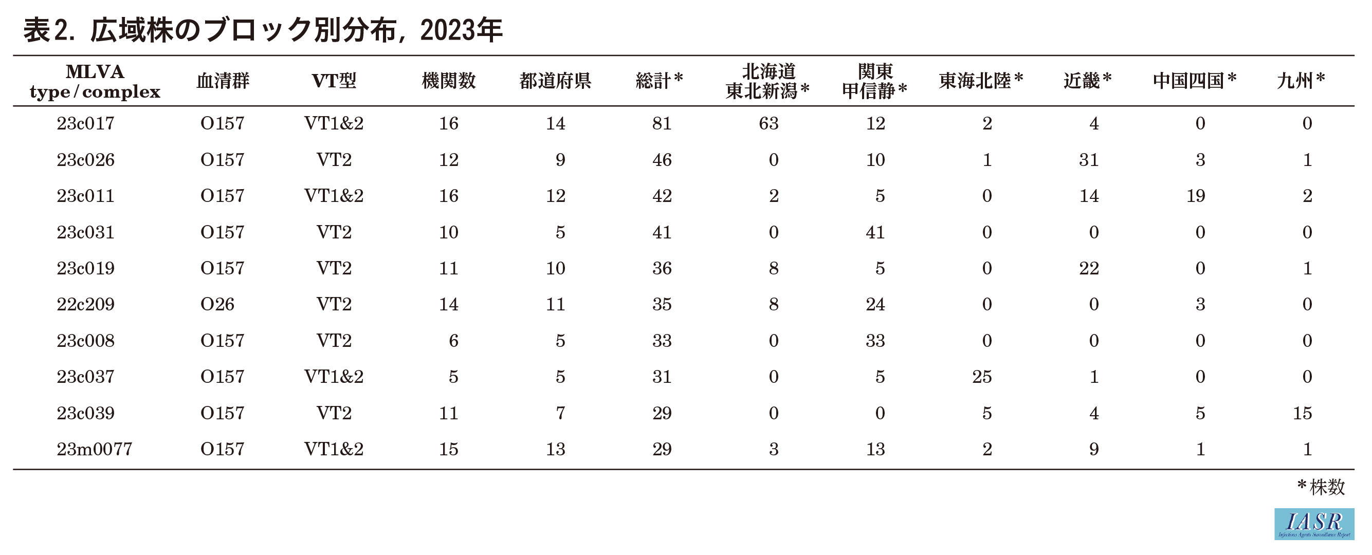 トップページ > サーベイランス > 病原微生物検出情報(IASR) > IASR特集記事 > 2023年に分離された腸管出血性大腸菌のMLVA法による解析