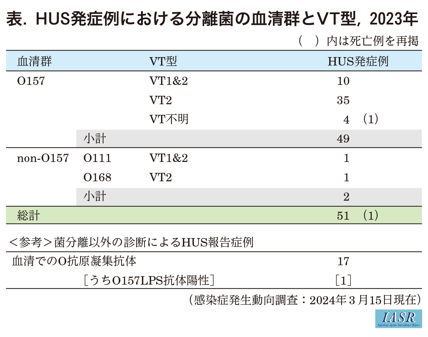 IASR 45(5), 2024【特集】腸管出血性大腸菌感染症 2024年3月現在