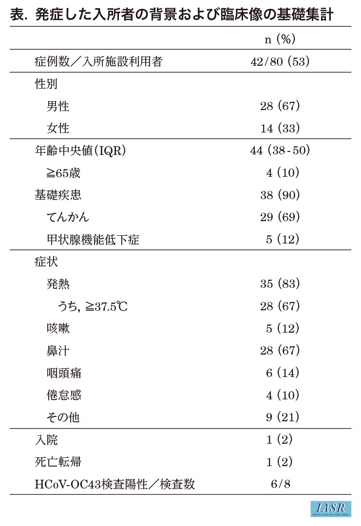 障がい者支援施設におけるヒトコロナウイルスOC43の集団感染事例―富山県