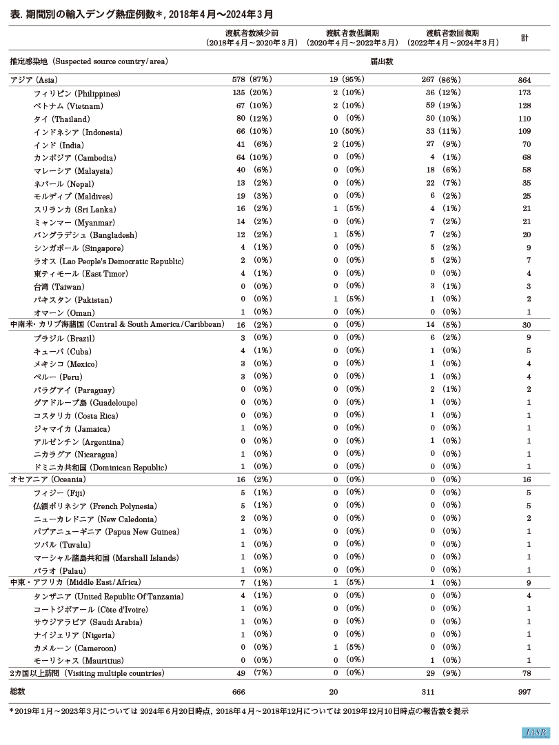 日本の輸入デング熱症例の動向について(2018年4月~2024年3月診断症例)