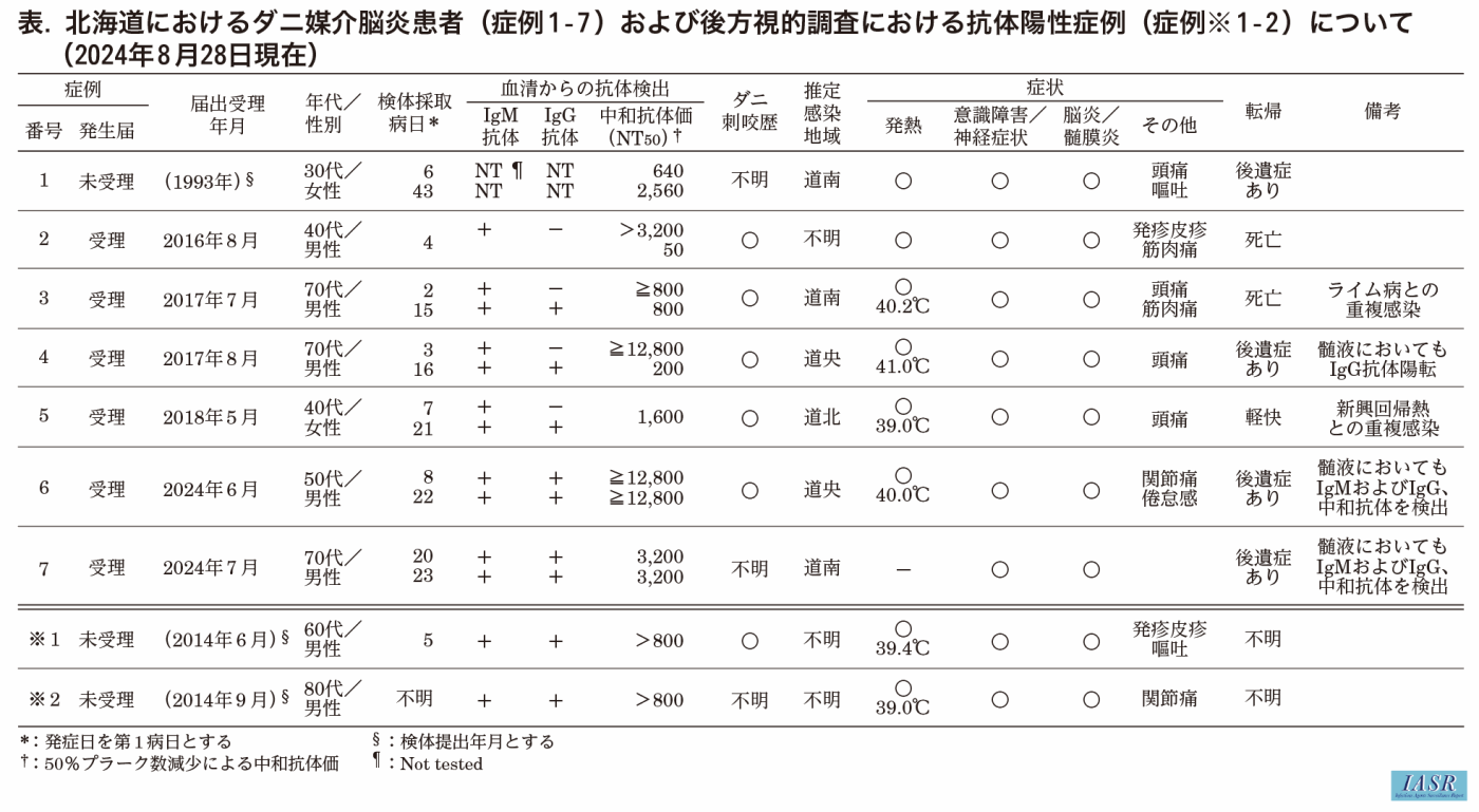 2024年に北海道で報告された複数のダニ媒介脳炎症例について