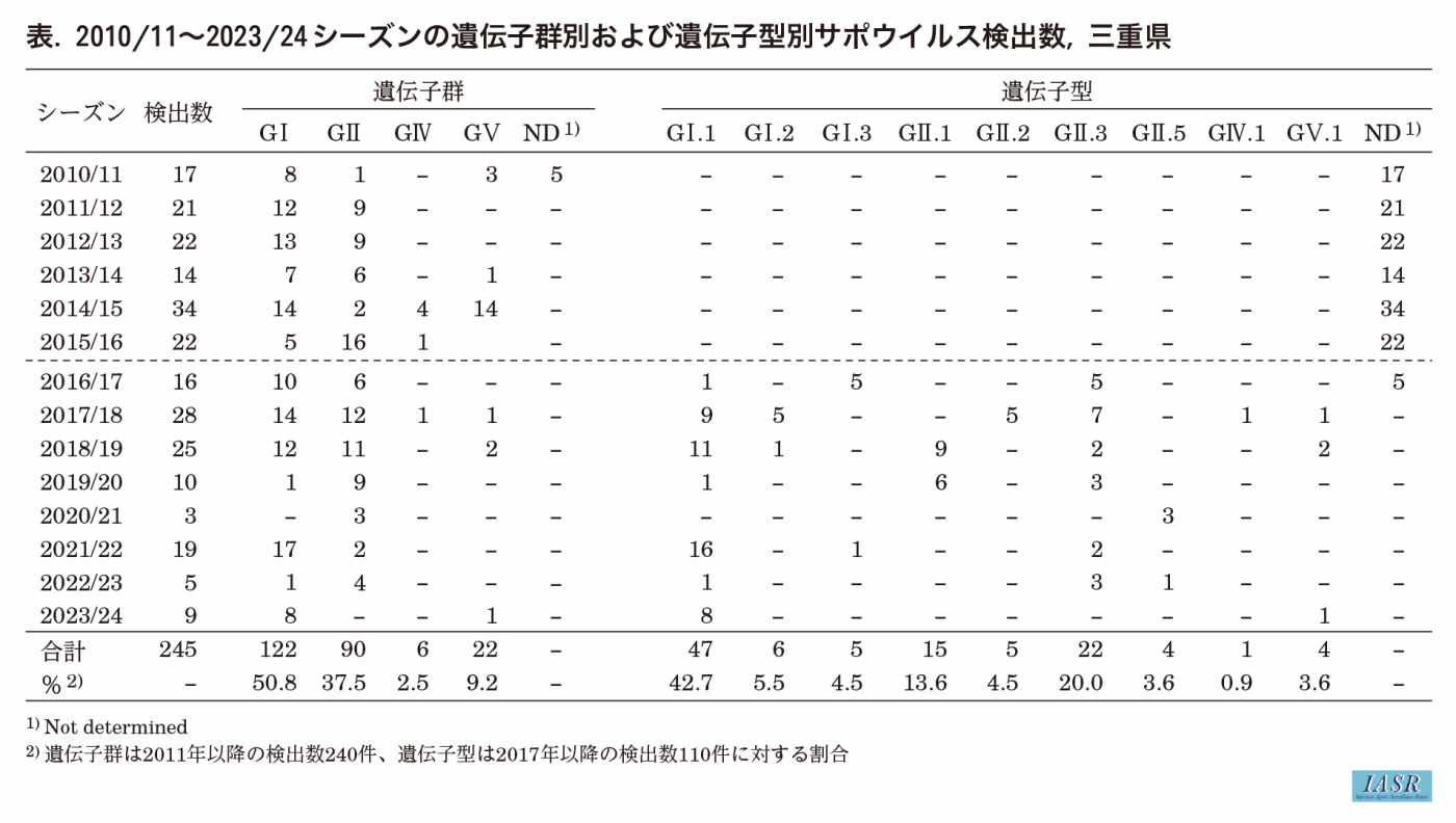 2010/11~2023/24シーズンにおけるサポウイルス流行の特徴と遺伝子群および遺伝子型の変遷―三重県