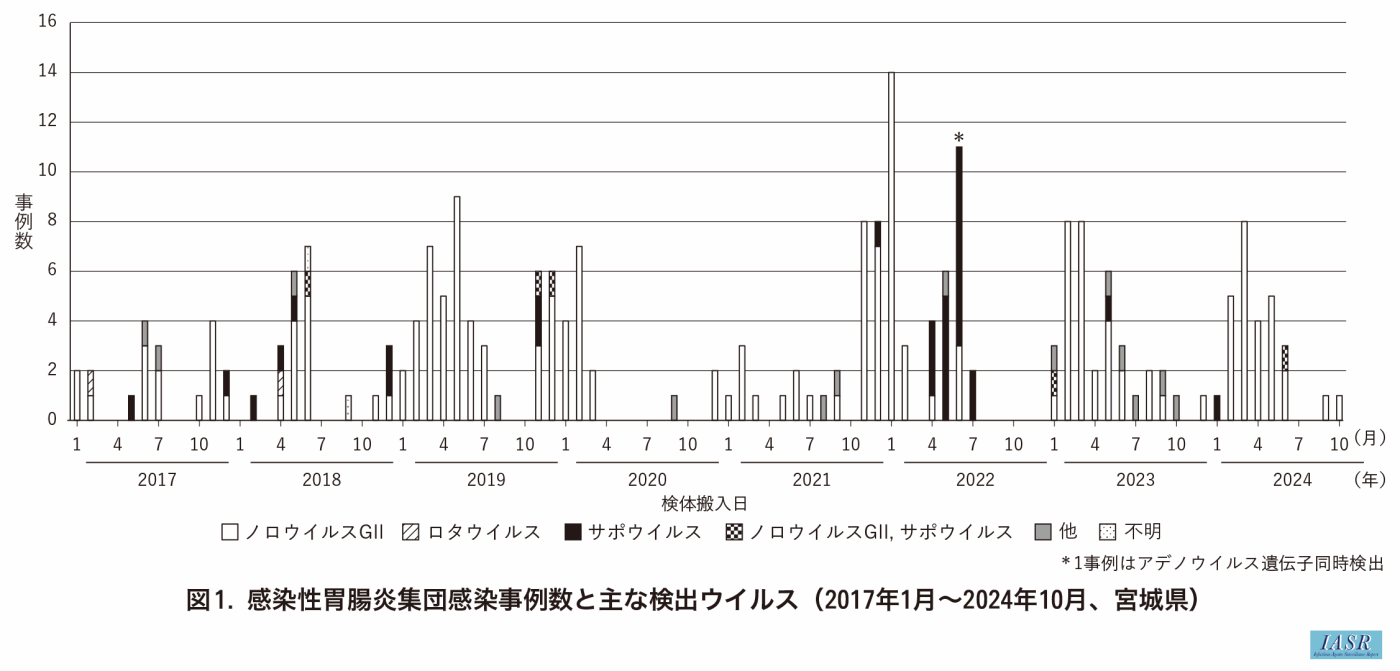 - 国立感染症研究所, IASR速報集計表 ウイルス 年別 胃腸炎ウイルス(2024年10月31日作成)