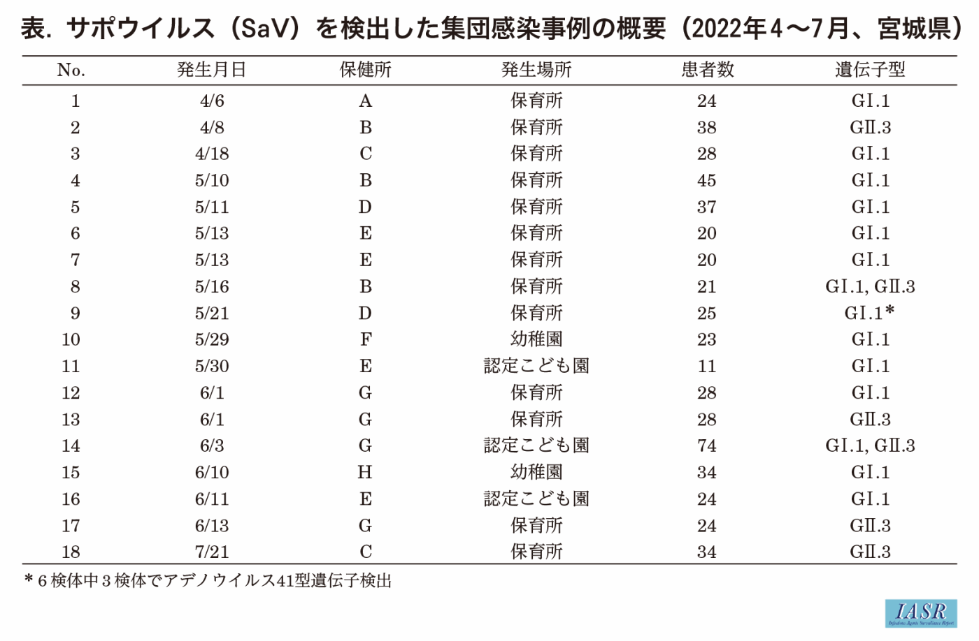 宮城県内の保育施設におけるサポウイルスによる急性胃腸炎集団感染事例の集積