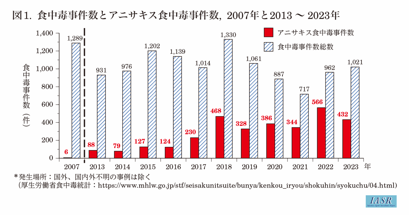 1997年、食品媒介の寄生虫性疾患に関する通知が厚生労働省(厚労省)から発出された。その後、1999年には食中毒事件票における病因物質「その他」の項目に「アニサキス等」が追加され、さらに2012年には食品衛生法施行規則が一部改正され、「クドア」、「サルコシスティス」、「アニサキス」、「その他の寄生虫」が食中毒の病因物質として個別に分類された。そのため、2013年からそれらの疾患は食中毒統計の病因物質として個別集計されている。また、「その他の寄生虫」には、肺吸虫(本号9ページ)、旋尾線虫、条虫などが例として挙げられている。