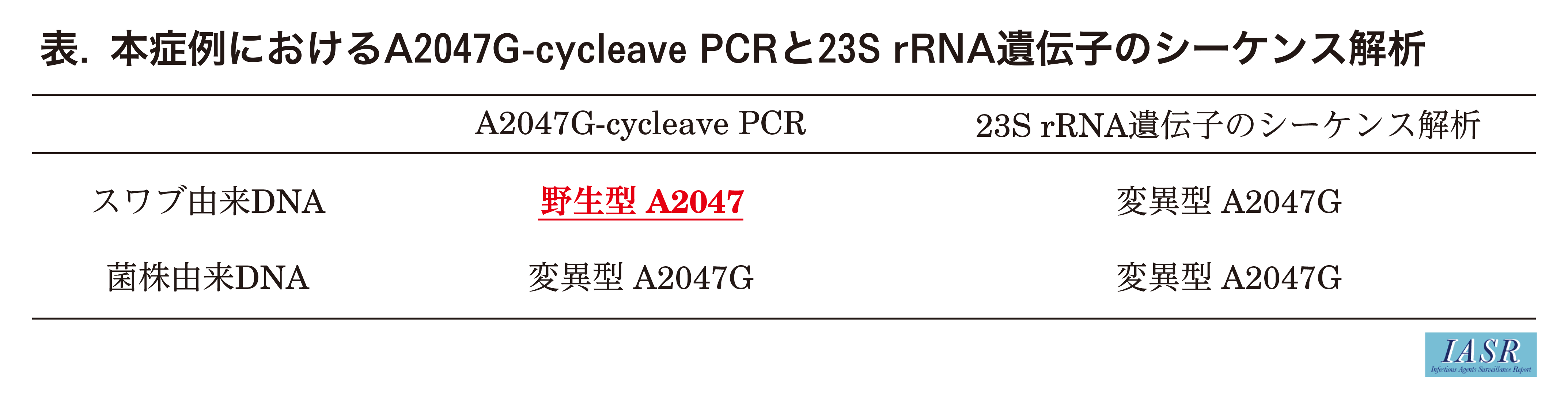 謝辞:A2047G-cycleave PCR検査キットのご提供と貴重な情報をいただきました国立感染症研究所細菌第二部第一室・大塚菜緒先生に深謝いたします。