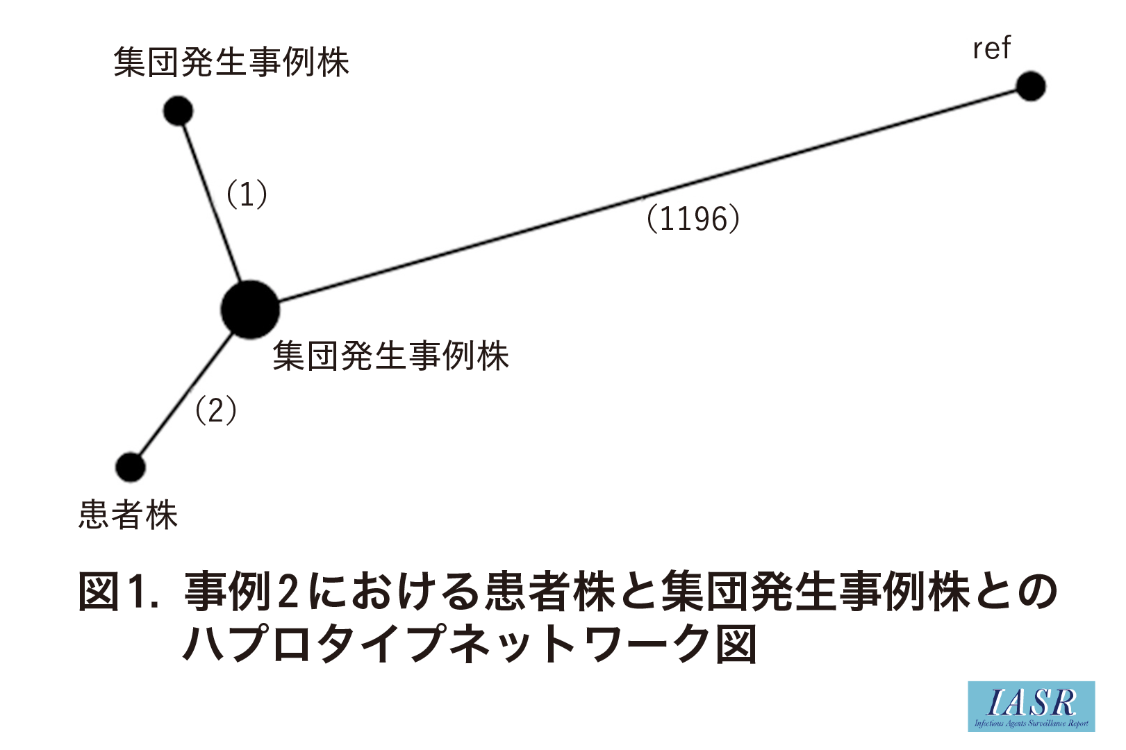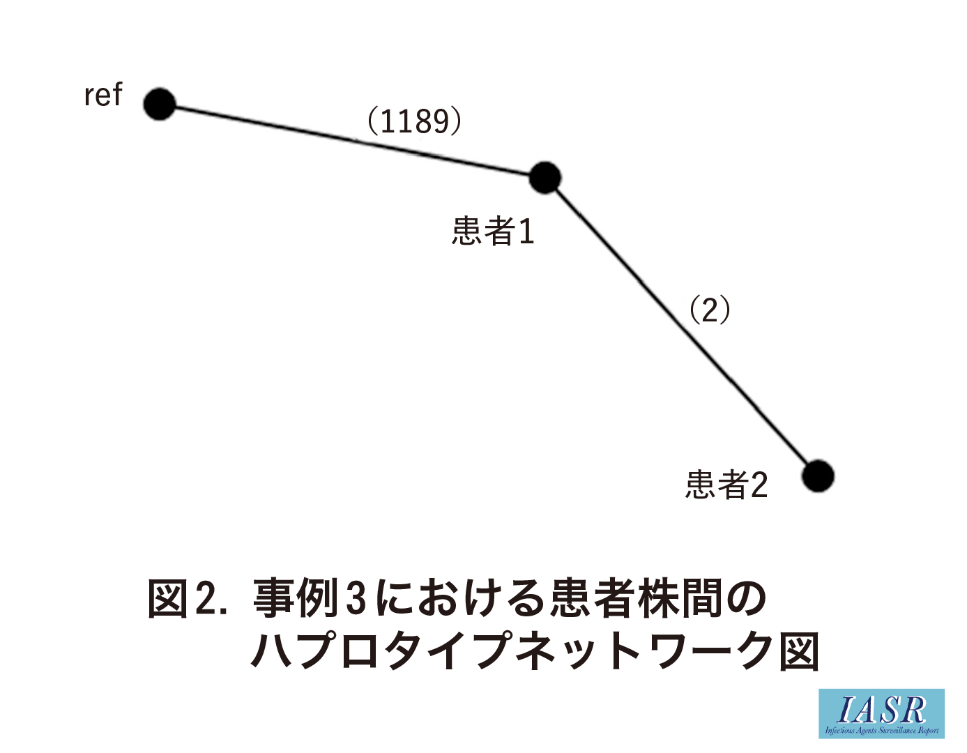いずれも同一学校内に在籍していたが, 患者同士の接触は明らかでなかった。VNTR型は24領域中23領域で一致し(表), 患者の聞き取り調査を再度実施したが, 患者同士の接触は確認されなかった。同2株についてゲノム解析を実施したところ, 2SNPと菌株の相同性は極めて高いことが判明した(図2)。これらの結果を踏まえて, 患者2名は施設内で何らかの接触により感染したものと考えられ, 接触者健診対象者の再検討がなされた。